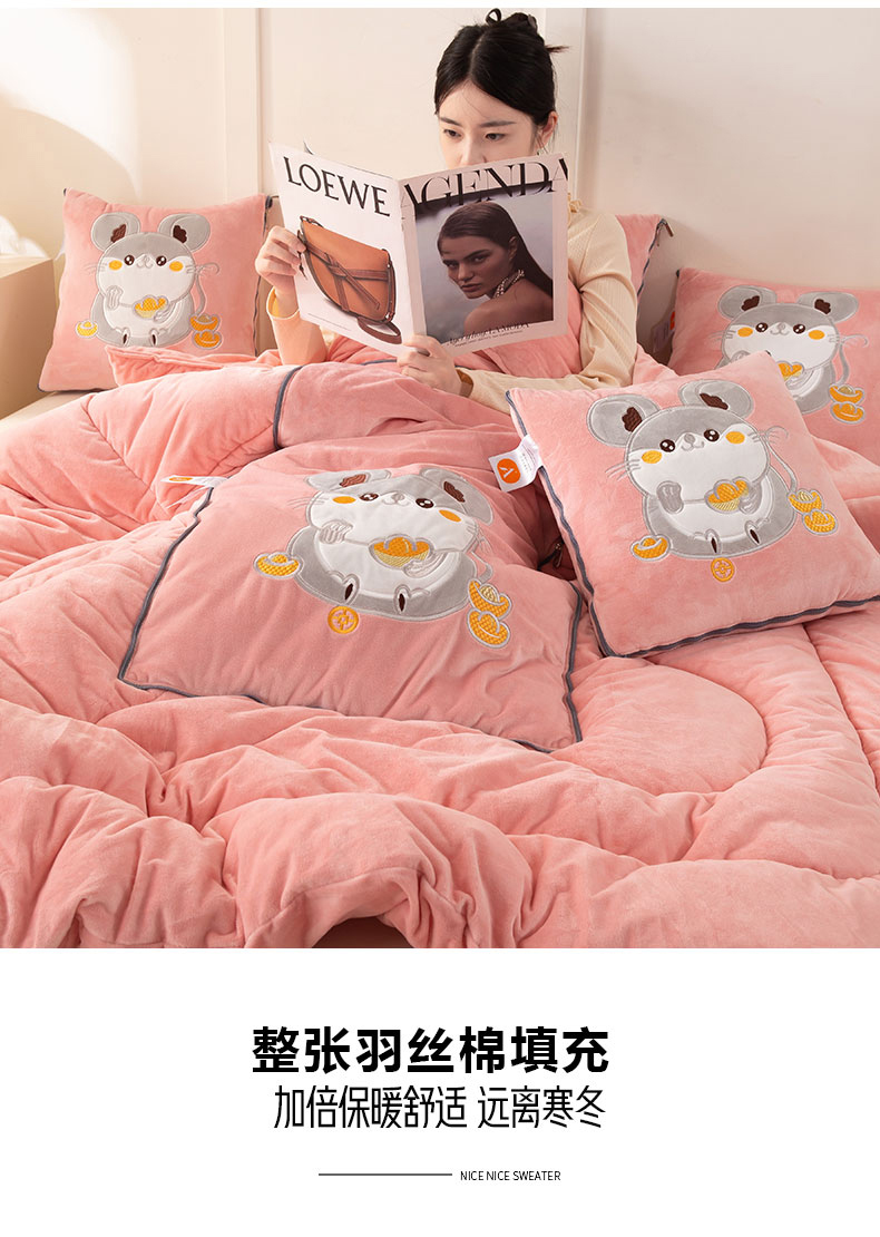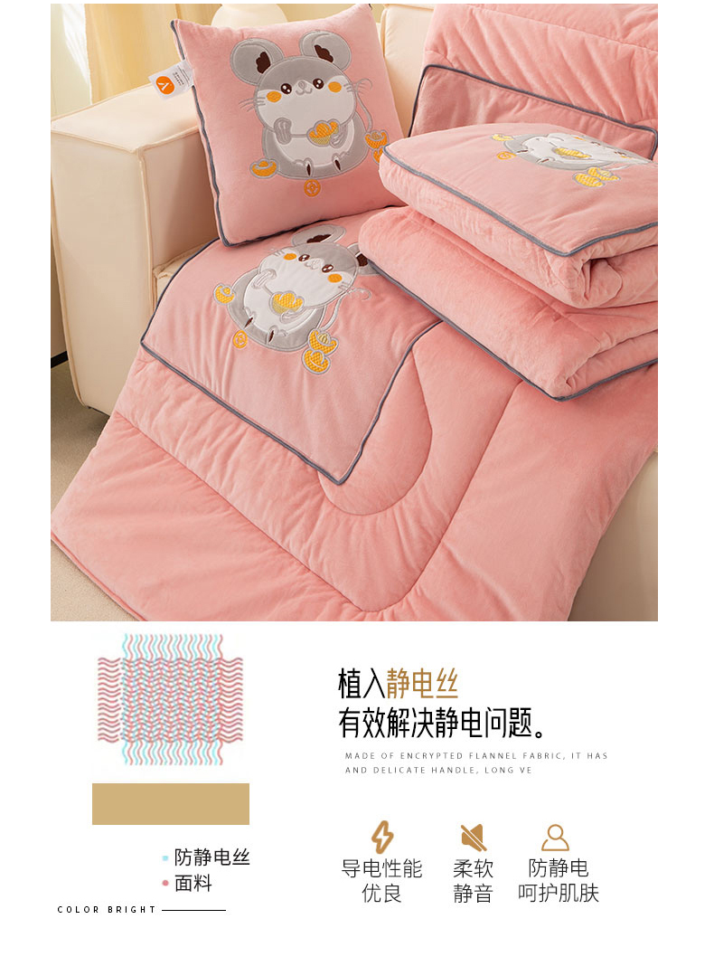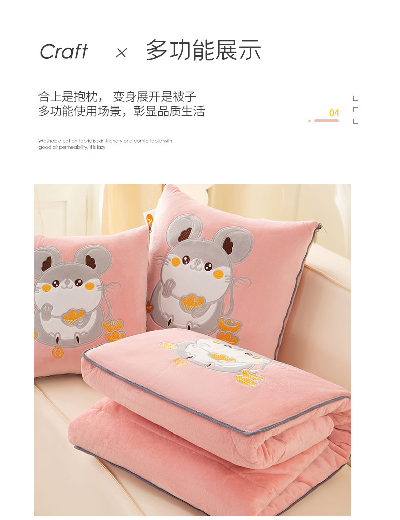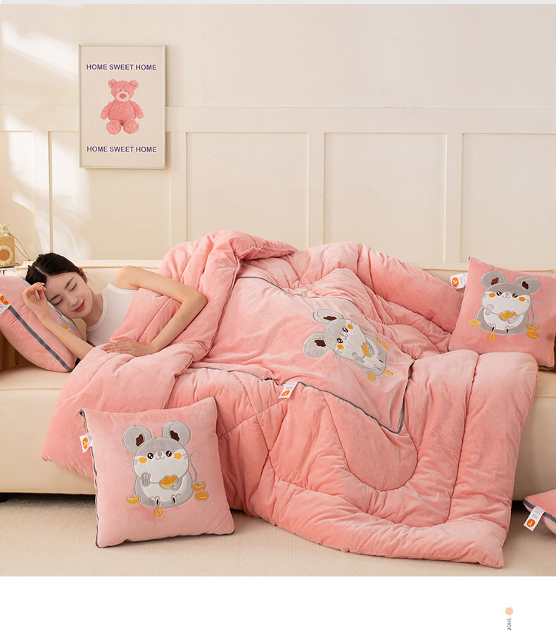 商品名称:多今家纺 2025新款加厚婴儿绒贴布刺绣抱枕被子-鼠我有钱系列 鼠我有钱-薄荷粉