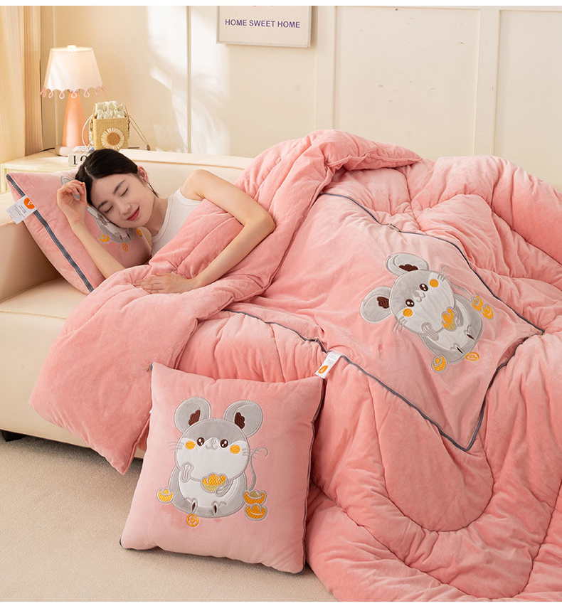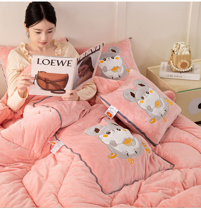 (总)多今家纺 2025新款加厚婴儿绒贴布刺绣抱枕被子-鼠我有钱系列,鼠我有钱-深灰,鼠我有钱-星郎蓝,鼠我有钱-薄荷粉,鼠我有钱-凤信紫,鼠我有钱-浅灰