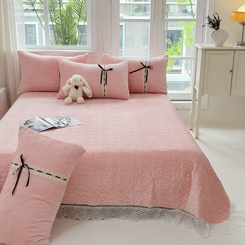 商品名称:韩秀家纺 2025新款牛奶绒单床盖 粉