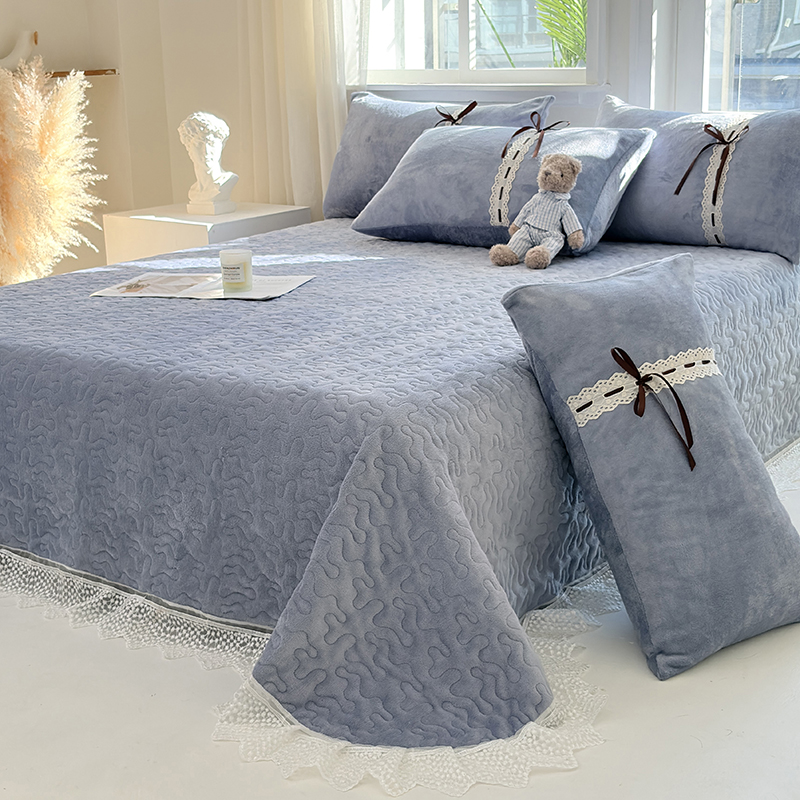 (总)韩秀家纺 2025新款加厚牛奶绒蝴蝶蕾丝床盖花边夹棉床盖三件套高克重珊瑚绒单床盖-莫奈花园,莫奈花园粉玉,莫奈花园灰,莫奈花园咖,莫奈花园米,莫奈花园青