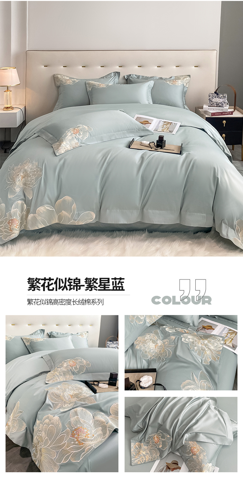 当前位置: 91家纺网 > 商品网购 > 床品套件 > 四件套 > 长绒棉四件套 > (总)置顶家纺 新款60支长绒棉刺绣四件套--繁花似锦
