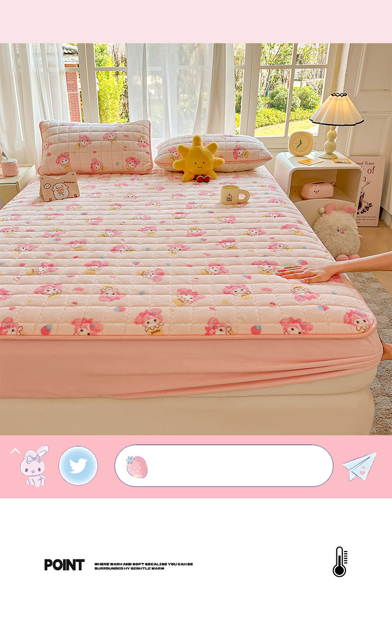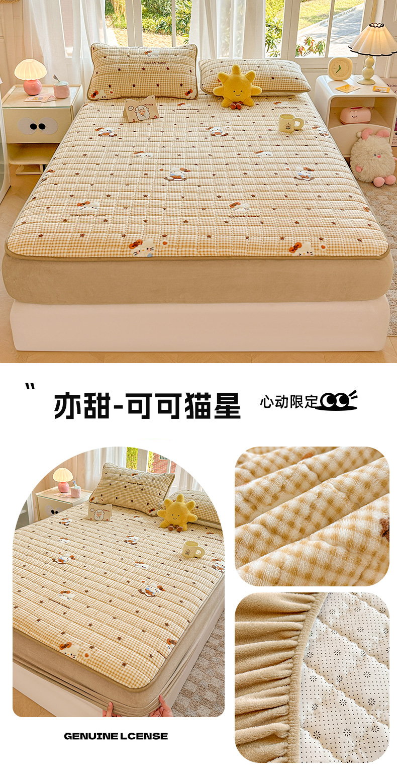 • 91家纺网 家纺一手货源 找家纺 澜妃 2025新款加厚牛奶绒卡通夹棉单床笠床笠单件单品床笠-亦甜系列 亦甜-小小新