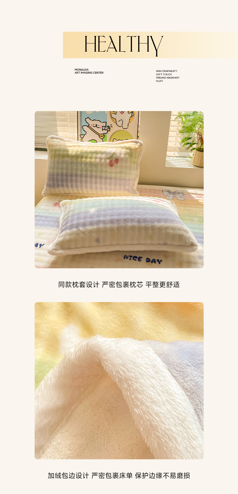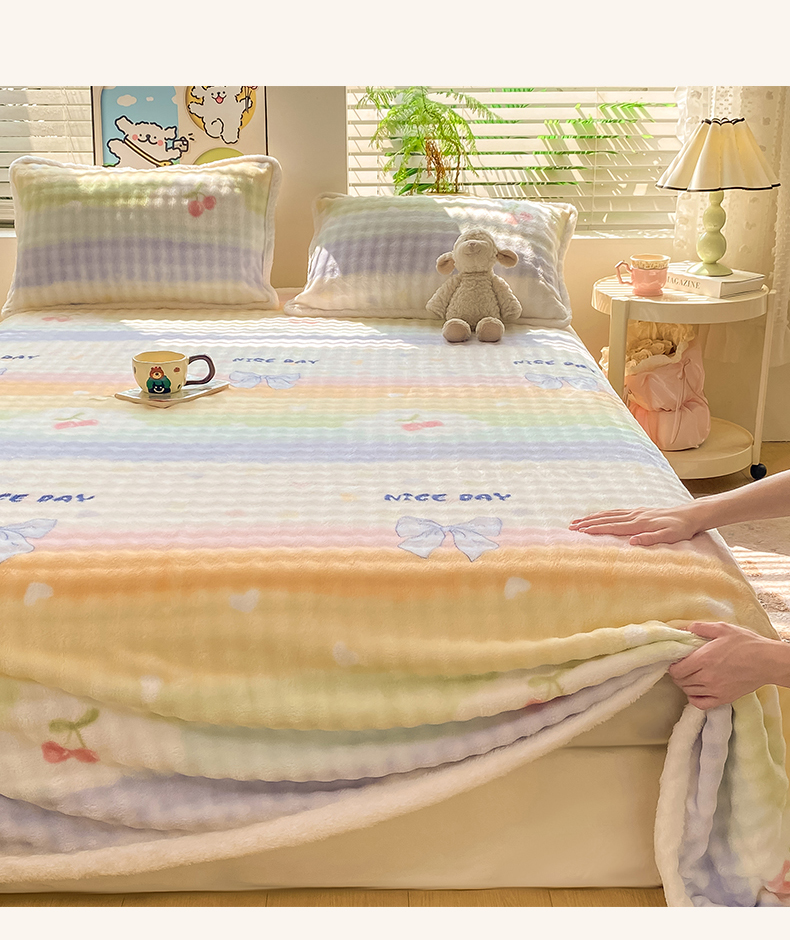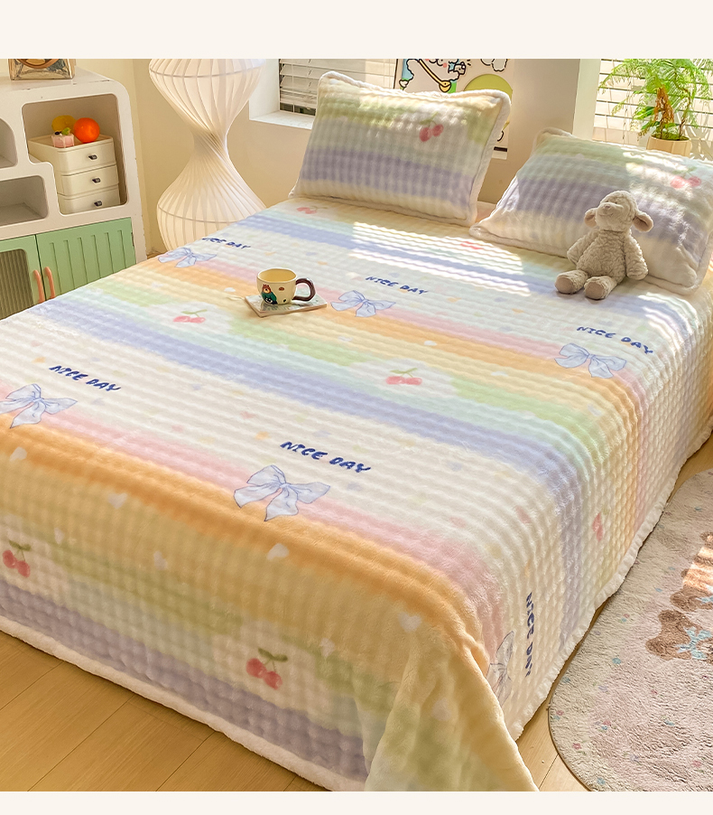 • 91家纺网 家纺一手货源 找家纺 眠势力 2025新款暖绒泡泡床单冬季保暖被单牛奶绒床单罩 樱桃彩虹【暖绒泡泡床单】