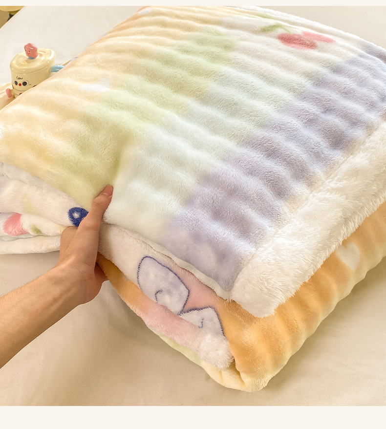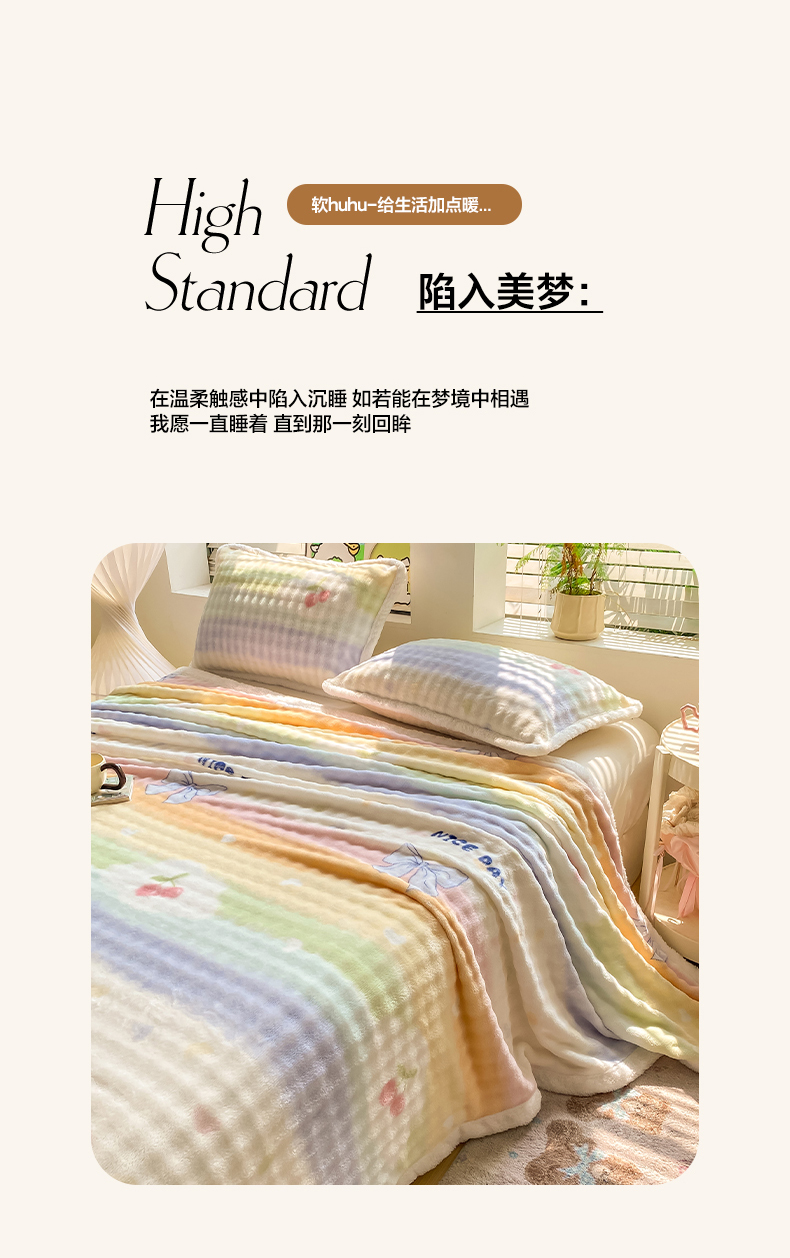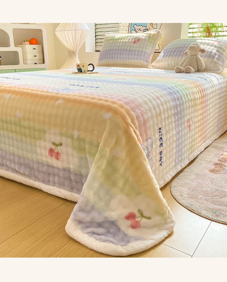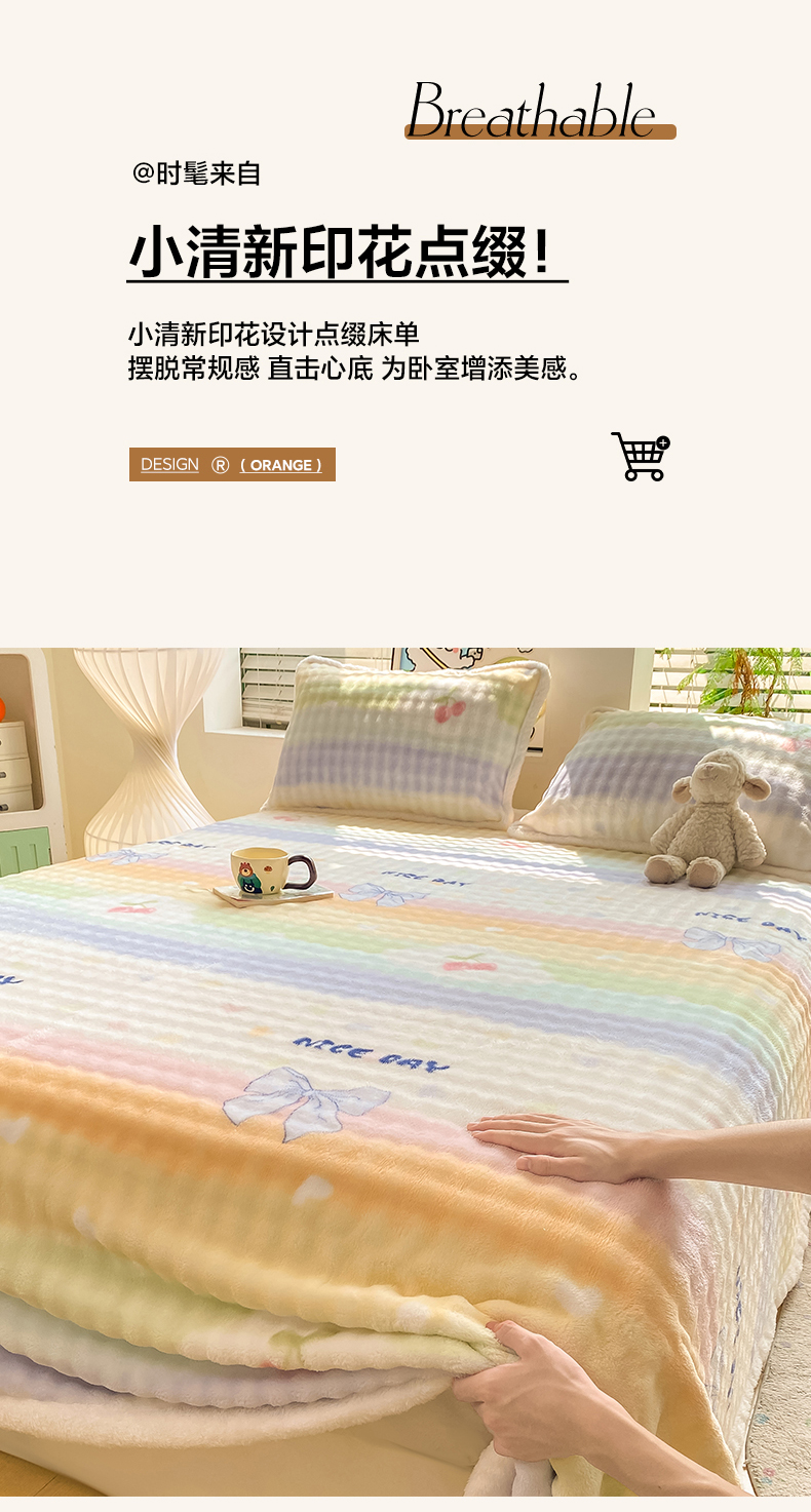 • 91家纺网 家纺一手货源 找家纺 眠势力 2025新款暖绒泡泡床单冬季保暖被单牛奶绒床单罩 樱桃彩虹【暖绒泡泡床单】