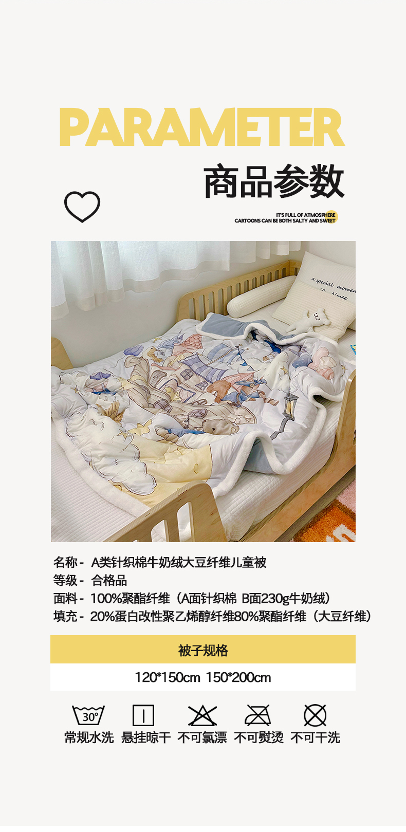 商品名称:荷马之梦 2025新款A类针织棉牛奶绒大豆纤维春秋被冬被儿童被芯幼儿园被子-奶芙系列 奶芙-云端国度