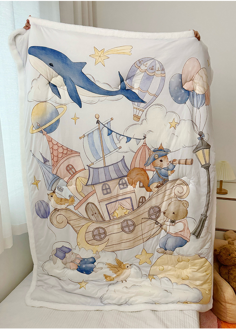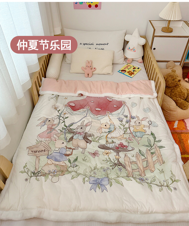(总)荷马之梦 2025新款A类小版针织棉数码印花手绘原创豆豆绒被芯儿童被子春秋被冬被-梦境,精灵小兔,恐龙之家,跑跑小熊猫B,糖果女孩,小王子