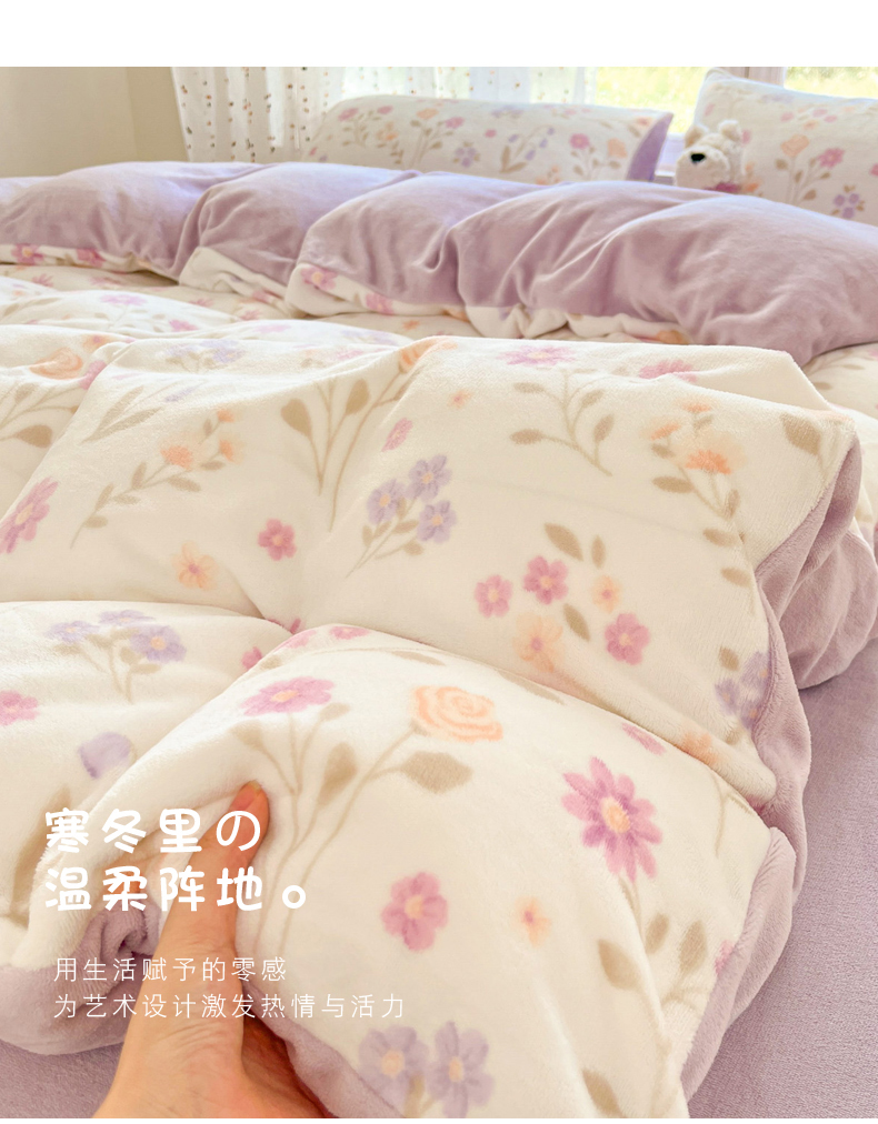 当前位置: 91家纺网 > 商品网购 > 床品套件 > 四件套 > 牛奶绒四件套 > 麦伦家居 2025新款双面200g牛奶绒四件套 月下花影-米