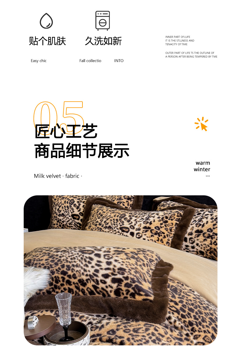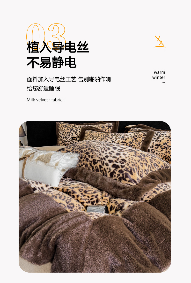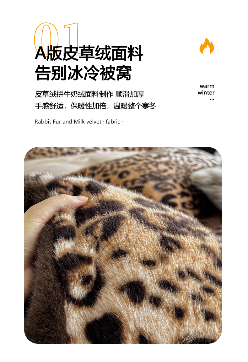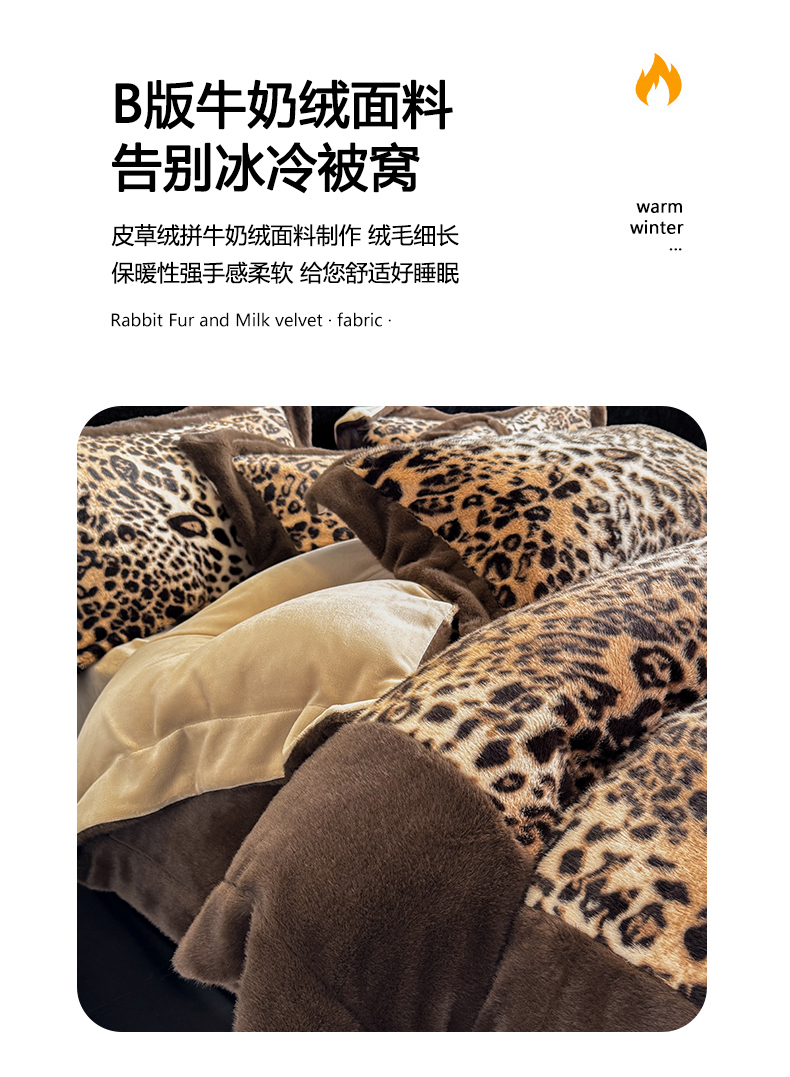商品名称:丞音家纺 11斤新款秋冬A类轻奢皮草绒加厚保暖水貂绒牛奶绒床上用品珊瑚绒四件套床单被套 卡尔-豹纹