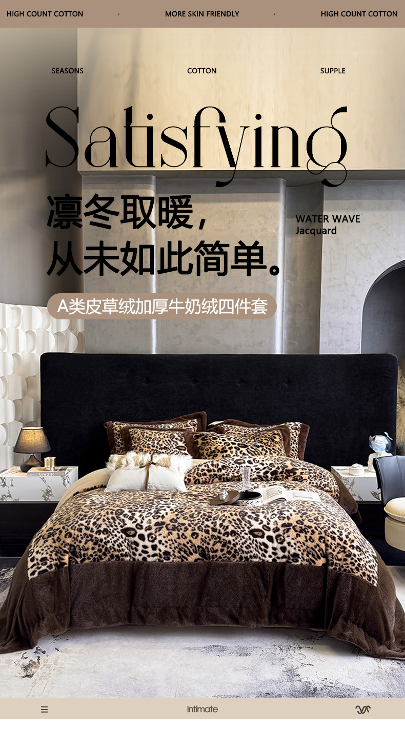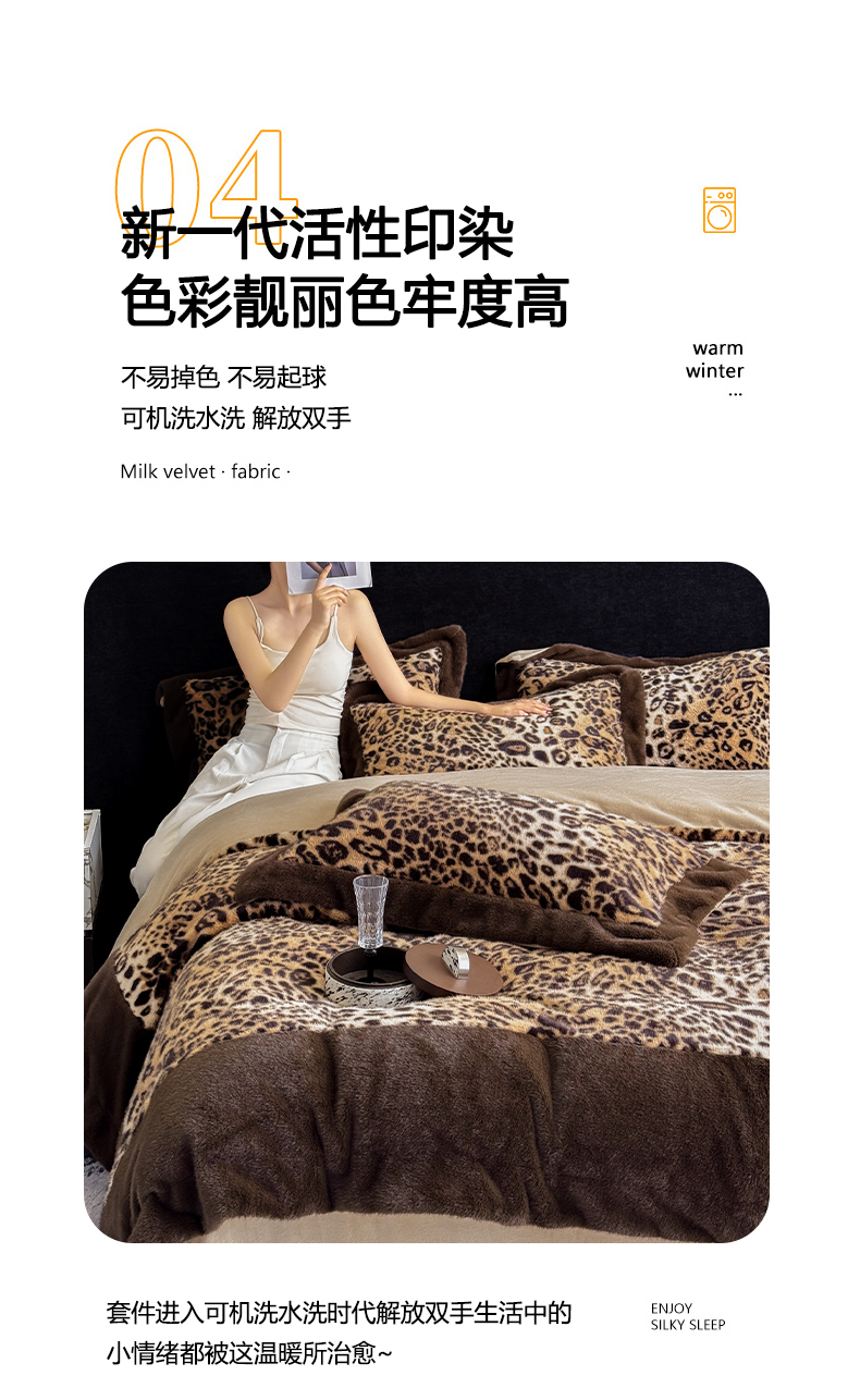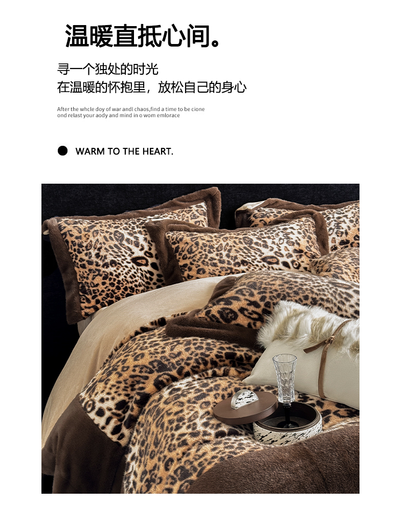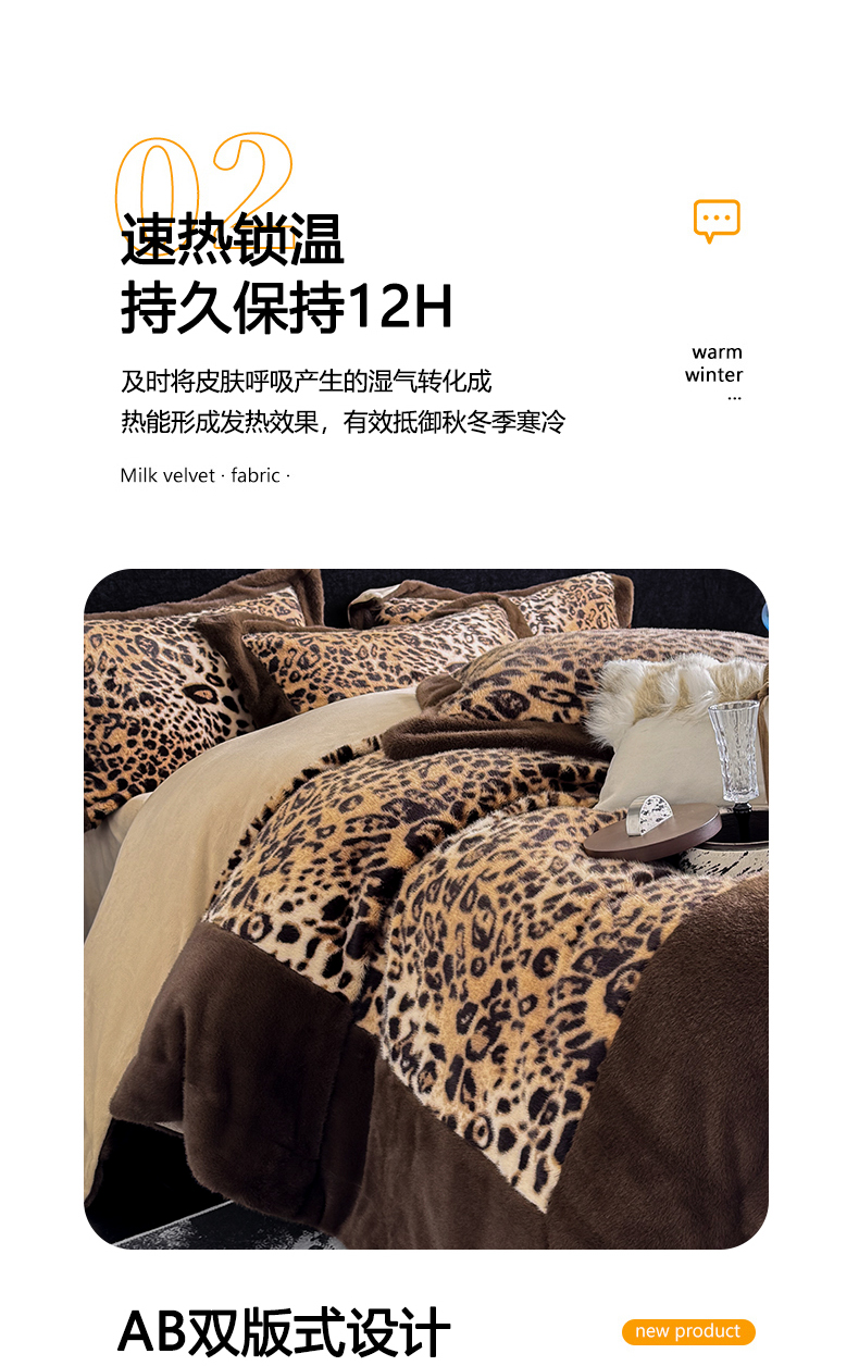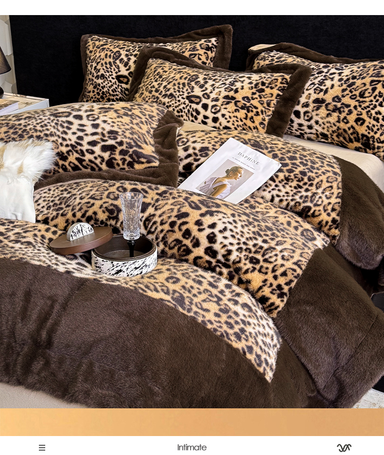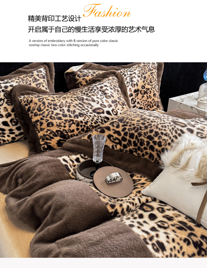 丞音家纺 11斤新款秋冬A类轻奢皮草绒加厚保暖水貂绒牛奶绒床上用品珊瑚绒四件套床单被套 卡尔-豹纹