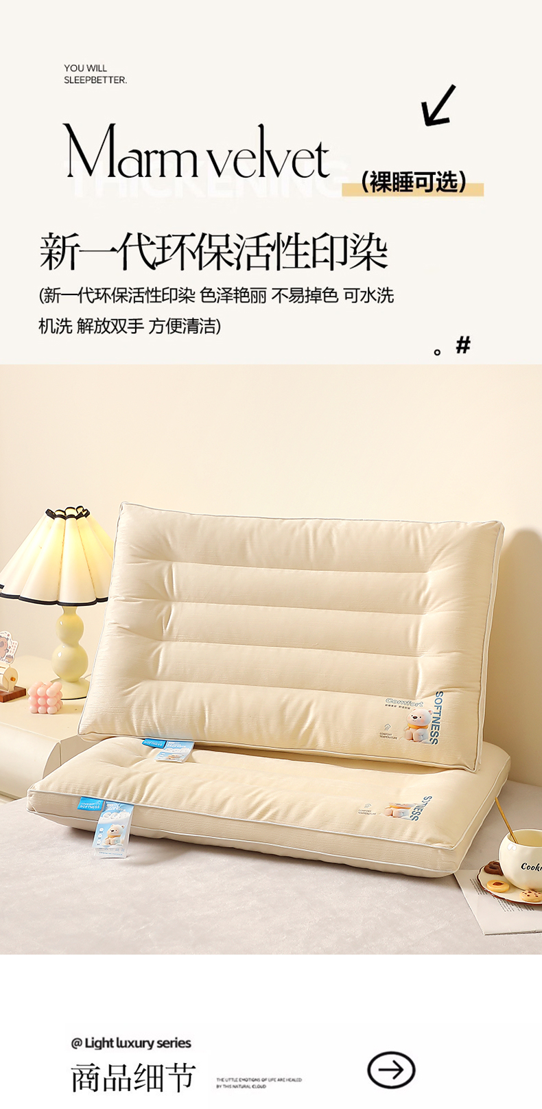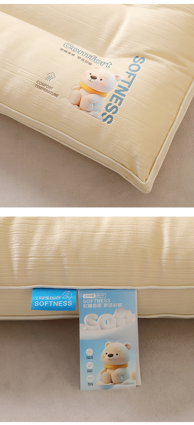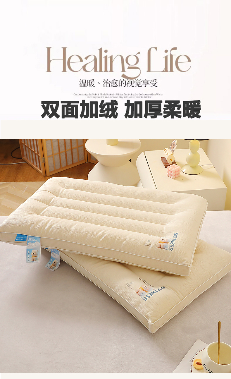 当前位置: 91家纺网 > 商品网购 > 枕头/枕芯/保健枕/颈椎枕 > 枕头枕芯 > 糖果枕芯 2025新款水晶绒枕芯双边单人宿舍枕头护颈定型枕头枕芯 云享护颈枕-米色