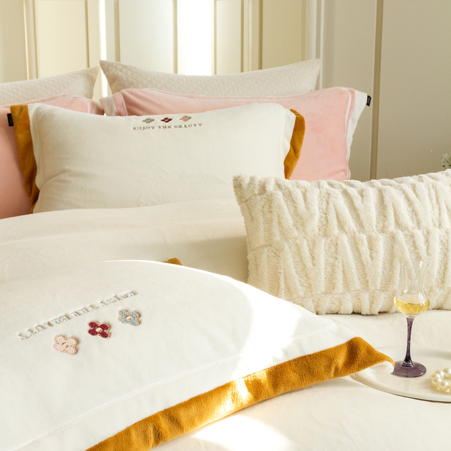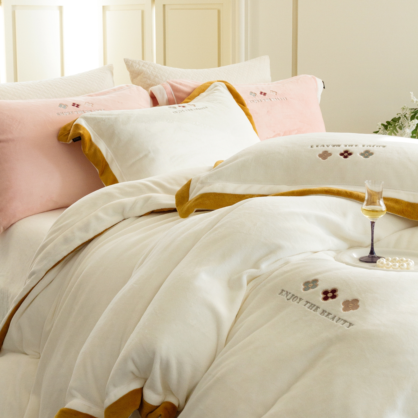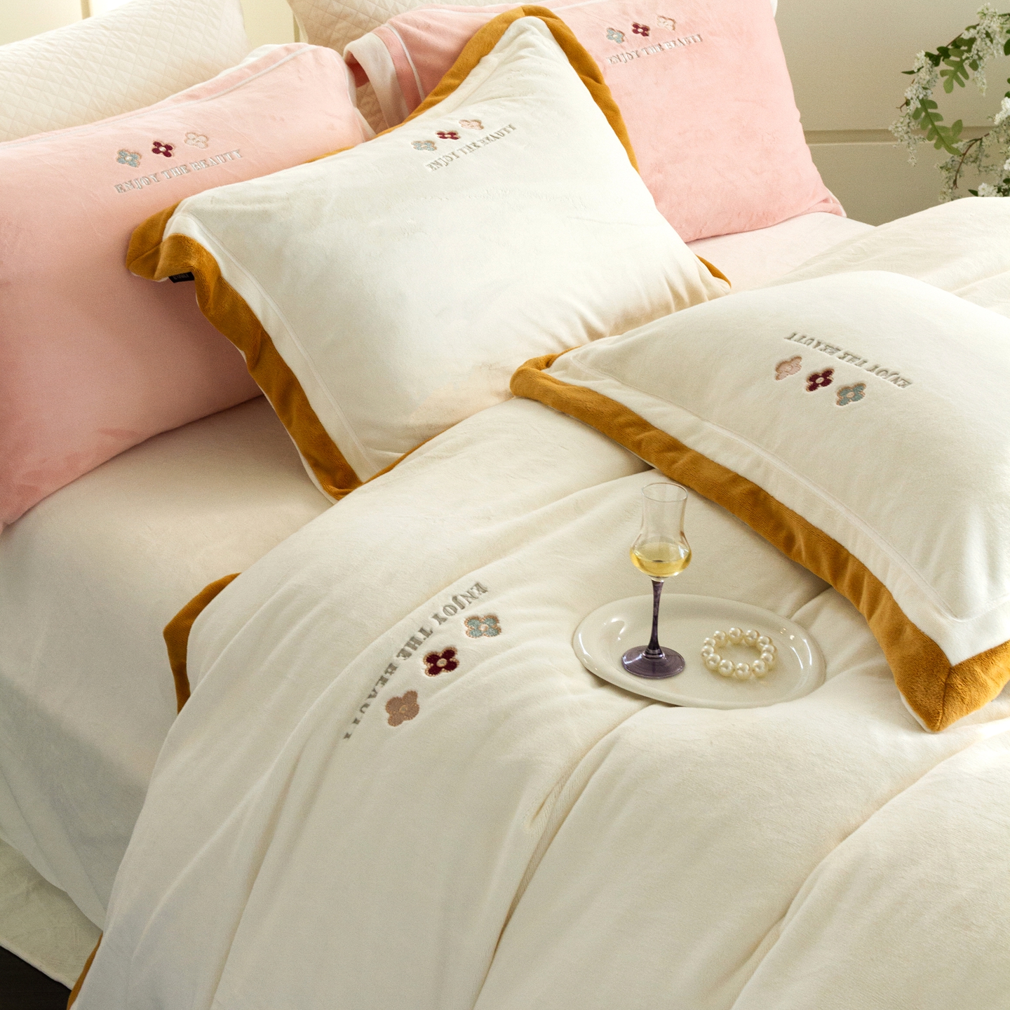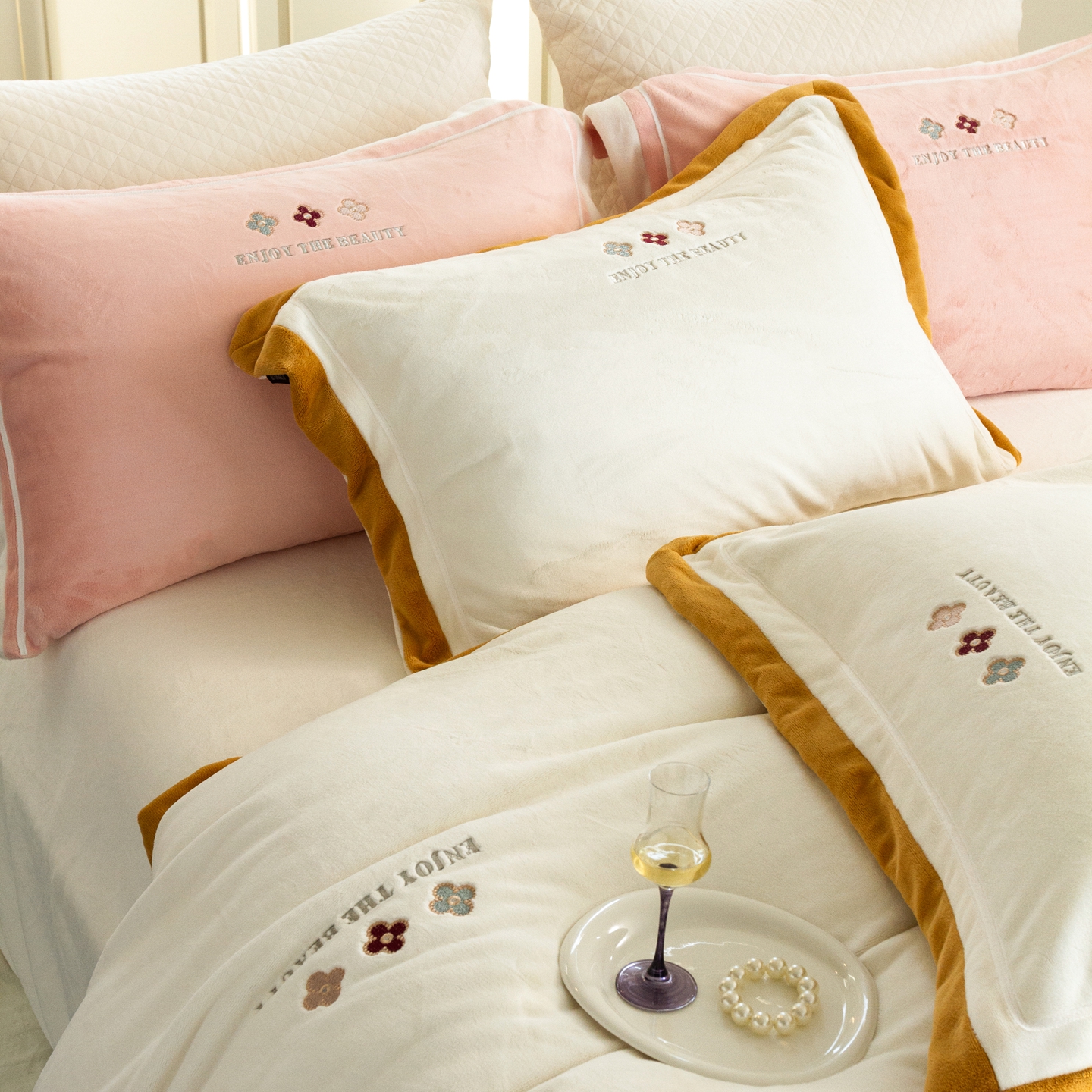 (总)馨蕊家居 2025新款意大利进口高精密刺绣拼角工艺秋冬法式高奢雪貂绒系列-绒雪芙 会员-10【券后控价358/378】,绒雪芙-奶咖,绒雪芙-蔷薇粉,绒雪芙-婉若紫,绒雪芙-月光白