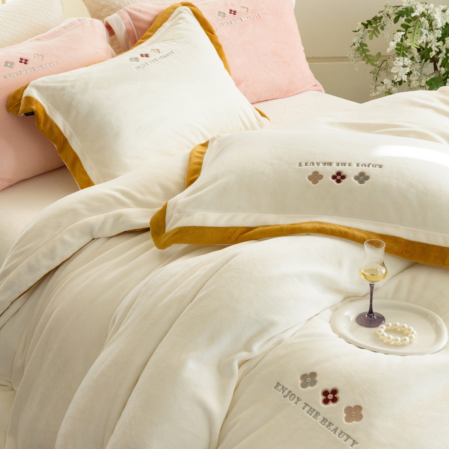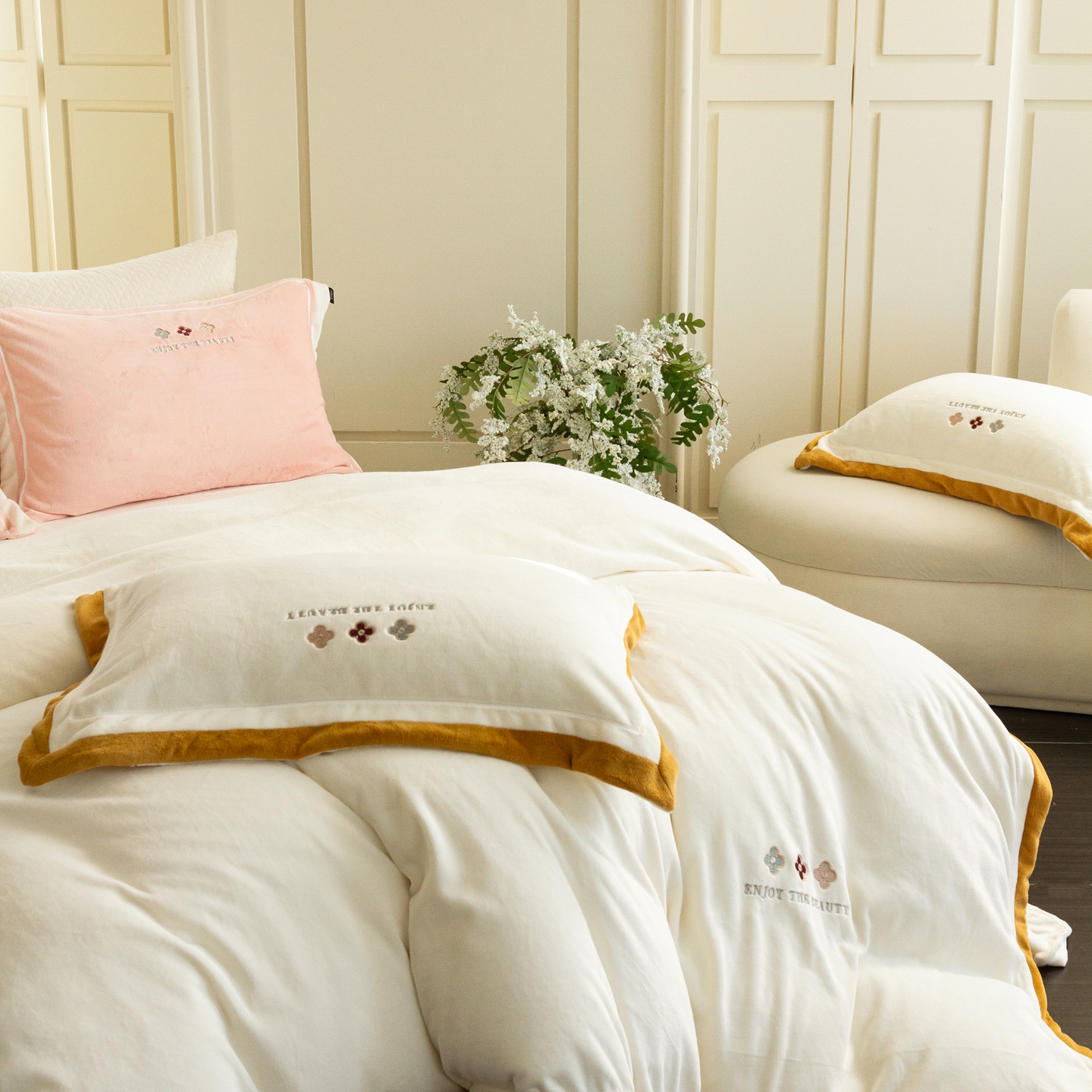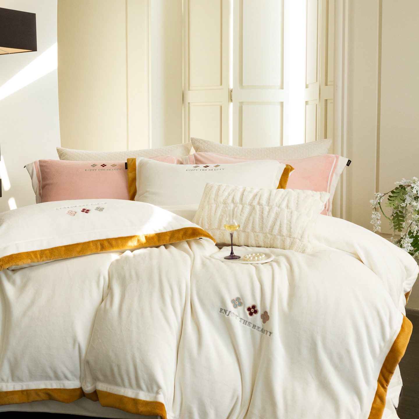 (总)馨蕊家居 2025新款意大利进口高精密刺绣拼角工艺秋冬法式高奢雪貂绒系列-绒雪芙 会员-10【券后控价358/378】,绒雪芙-奶咖,绒雪芙-蔷薇粉,绒雪芙-婉若紫,绒雪芙-月光白