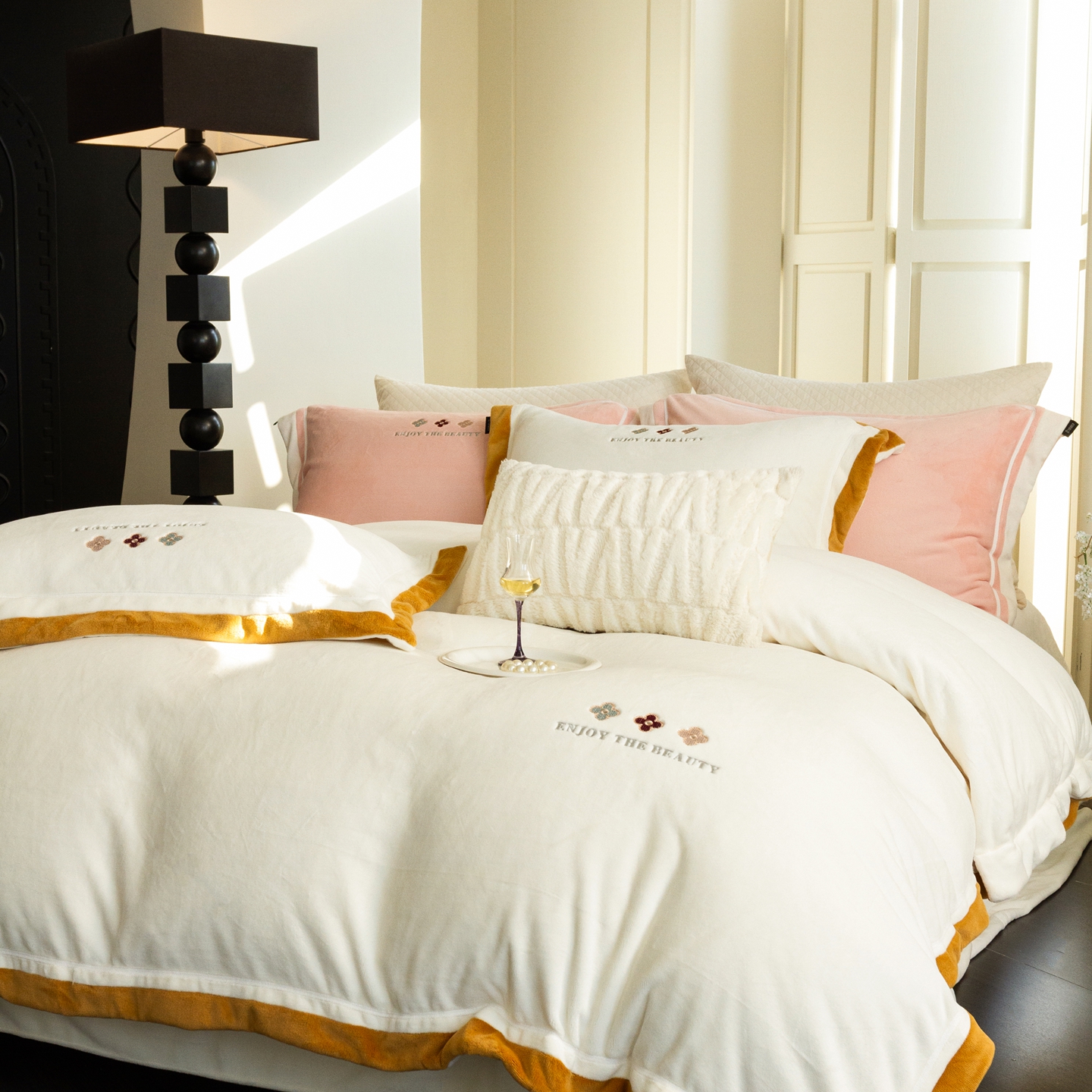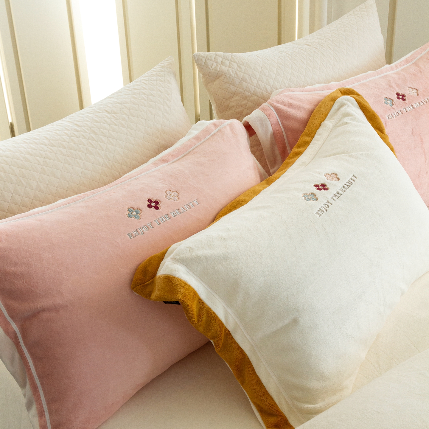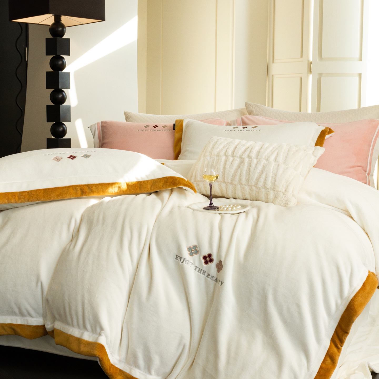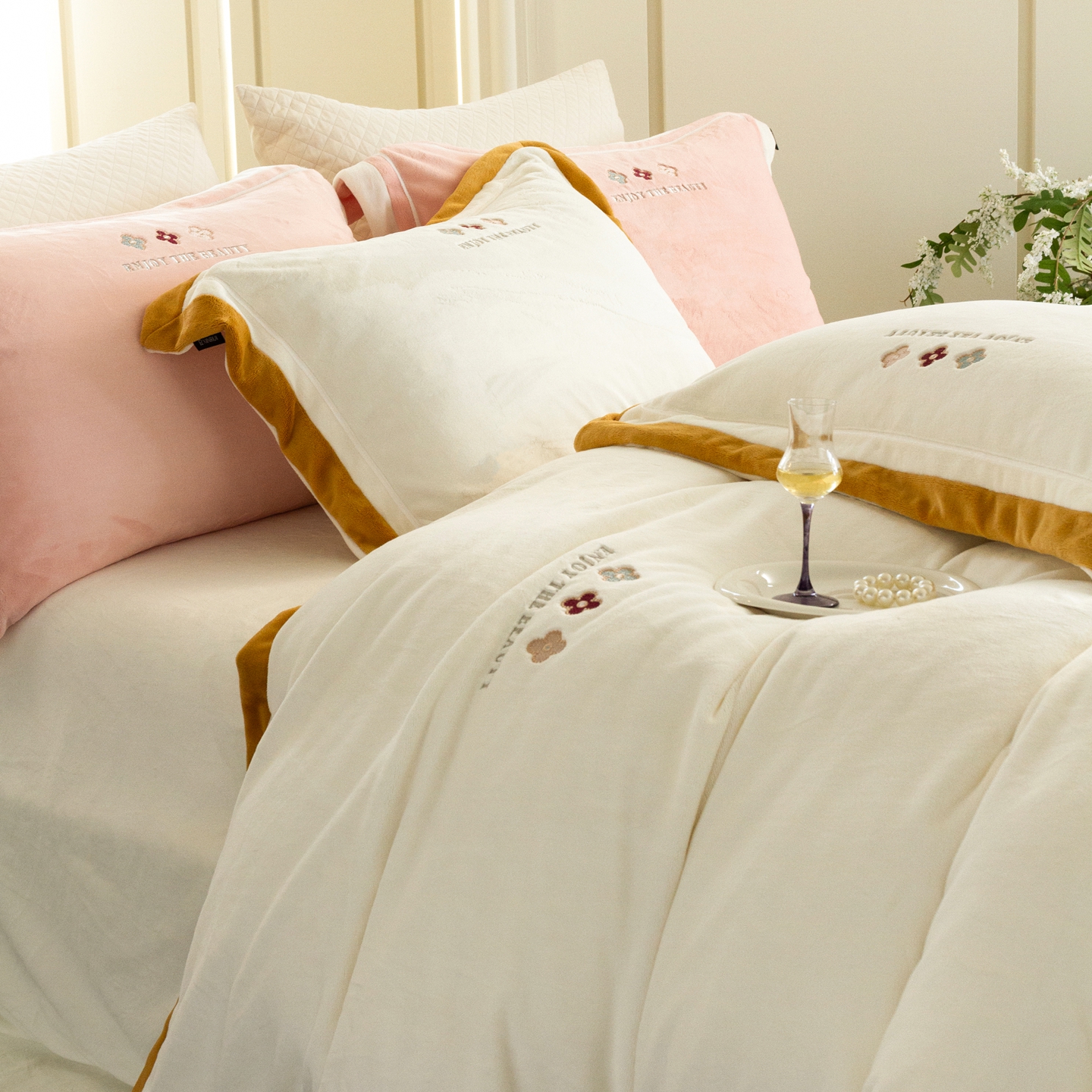 (总)馨蕊家居 2025新款意大利进口高精密刺绣拼角工艺秋冬法式高奢雪貂绒系列-绒雪芙 会员-10【券后控价358/378】,绒雪芙-奶咖,绒雪芙-蔷薇粉,绒雪芙-婉若紫,绒雪芙-月光白