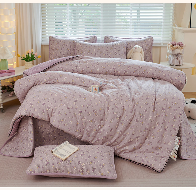 缔锦家纺 2025新款软糯全棉豆豆被被子被芯 紫蔓