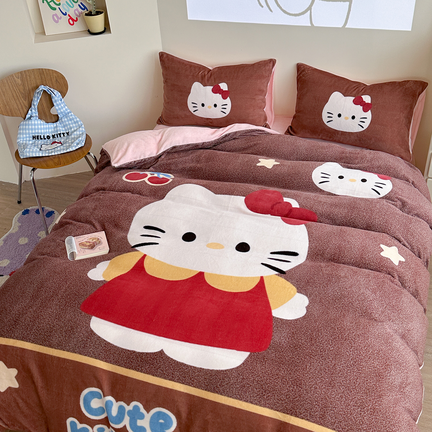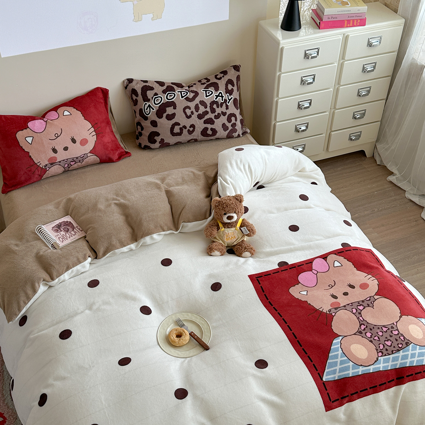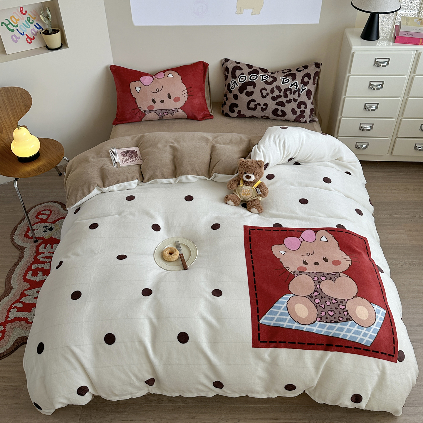 美乐迪家纺 2025新款高品质大版牛奶绒四件套 波点小猫
