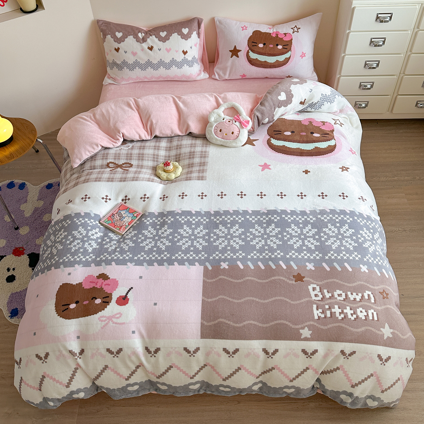 (总)美乐迪家纺 2025新款加厚牛奶绒花边四件套,许愿小狗,小猫的家,香肠狗,头套小兔,甜心派对,甜品小兔,猫咪日记,蓝色小狗,黄油小狗,烘焙熊
