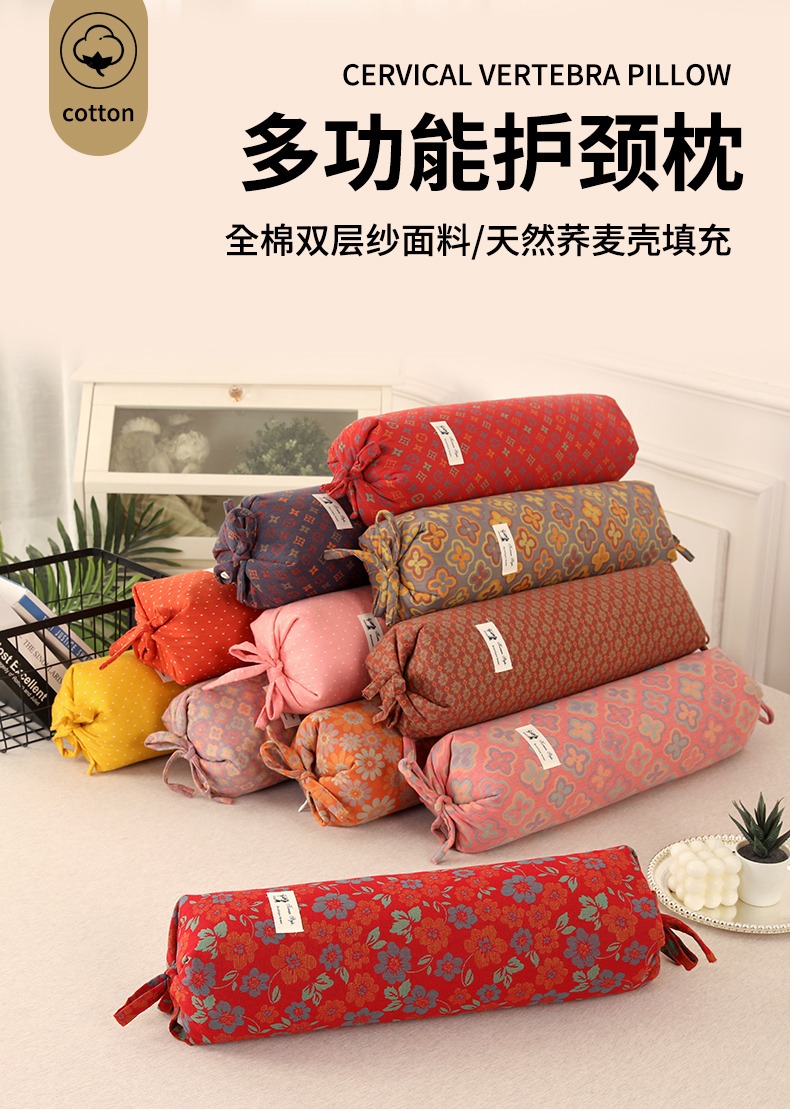 (总)明星枕业 2025新款全棉护颈椎圆柱枕双层纱布糖果枕头荞麦颈椎枕芯,组合图仅供展示不可下单,洛晨,绿纱,青筠,清秋,烟草棕,紫丁香
