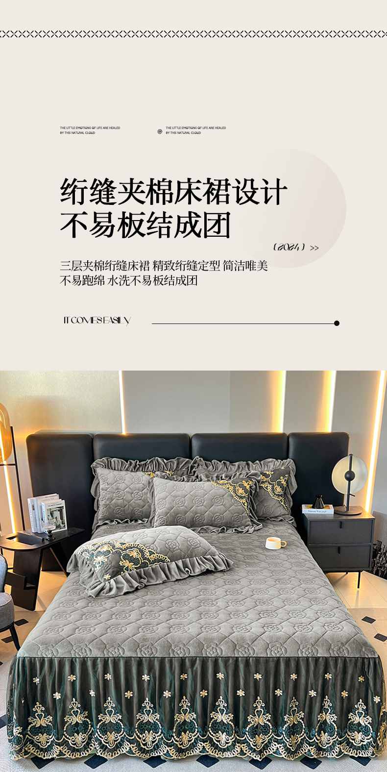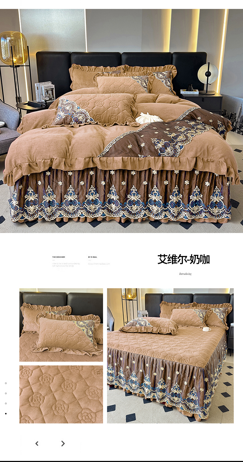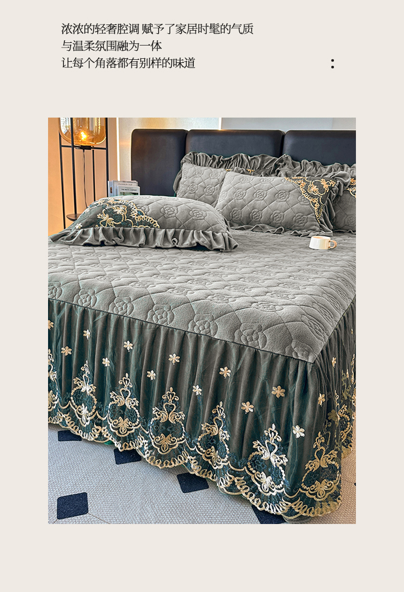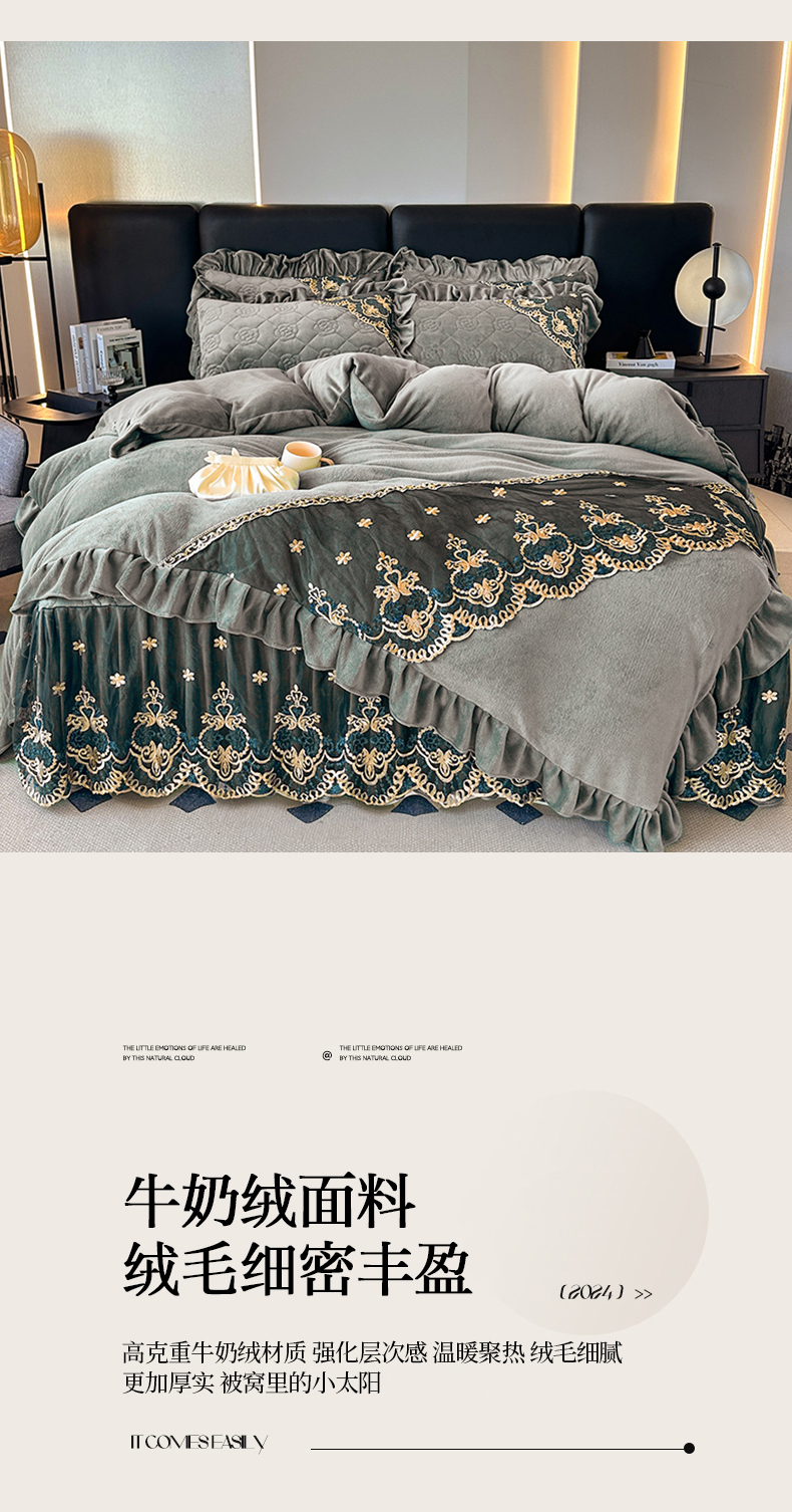 当前位置: 91家纺网 > 商品网购 > 床品套件 > 四件套 > 牛奶绒四件套 > 罗艺轩 2025新款牛奶绒浪漫花边床裙款四件套-暖洋洋(报活动和优惠券后控价99起/控价107起) 暖洋洋-灰