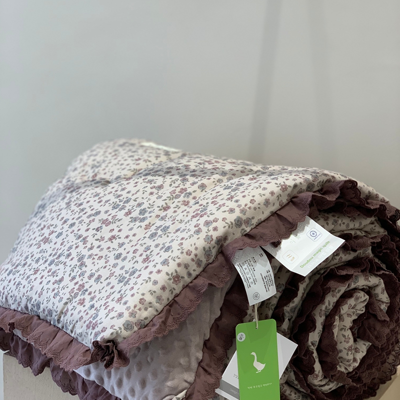 商品名称:汇庭 2025秋冬新·花边款单双人豆豆被系列 桃花溪