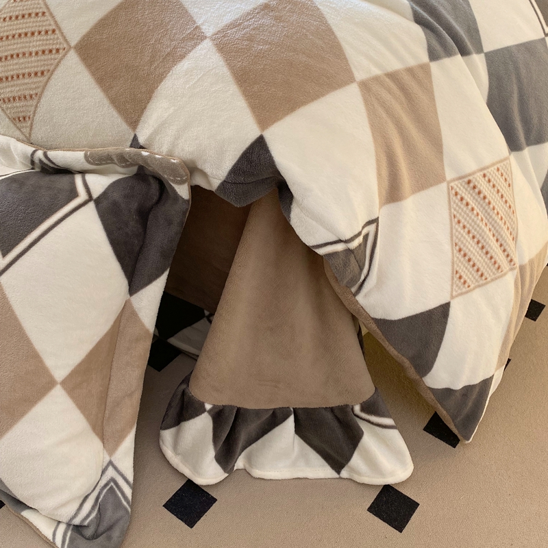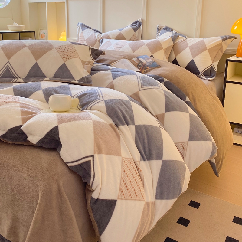 于果 2025新款牛奶绒印花四件套 几何空间-灰