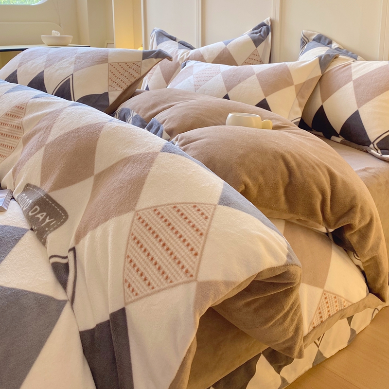 商品名称:于果 2025新款牛奶绒印花四件套 几何空间-灰