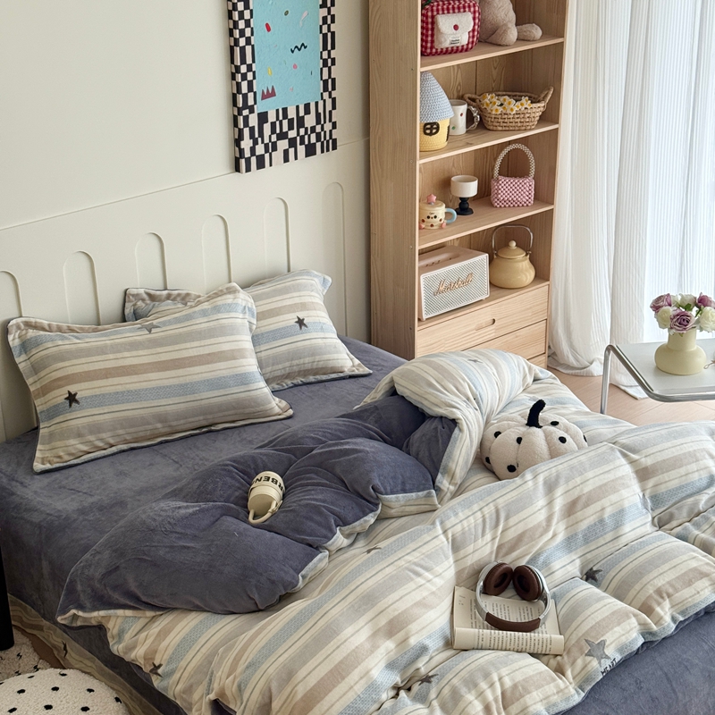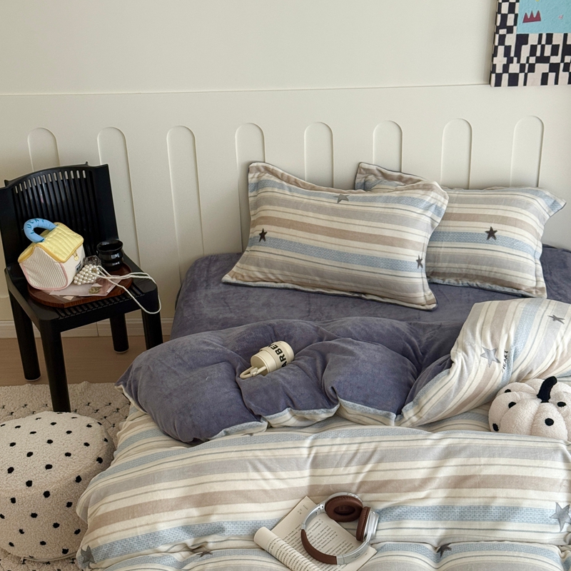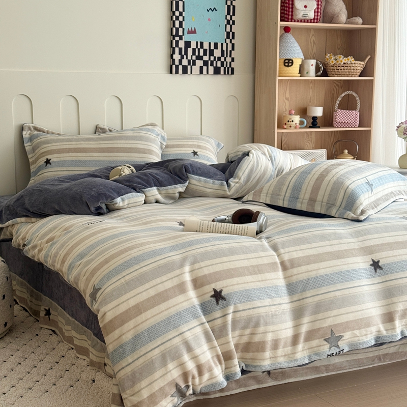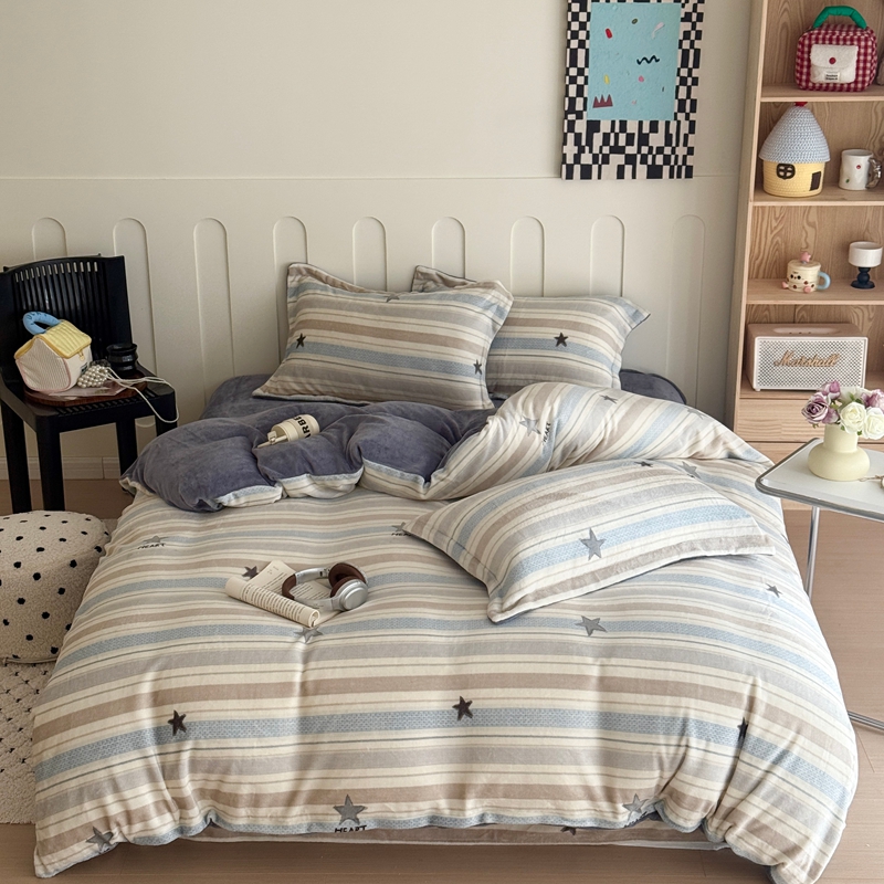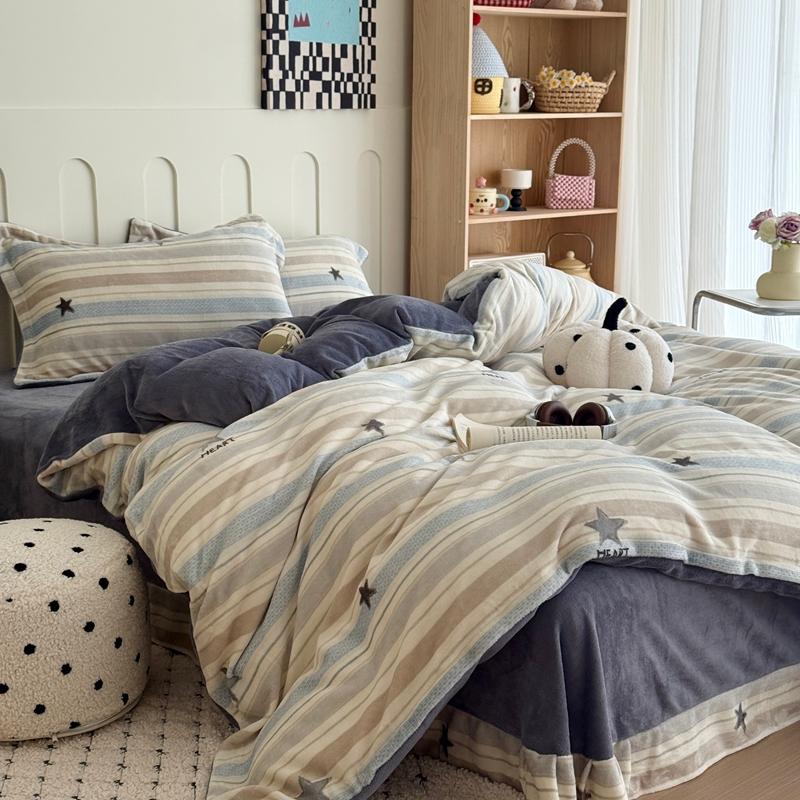 于果 2025新款牛奶绒印花四件套 星动旋律