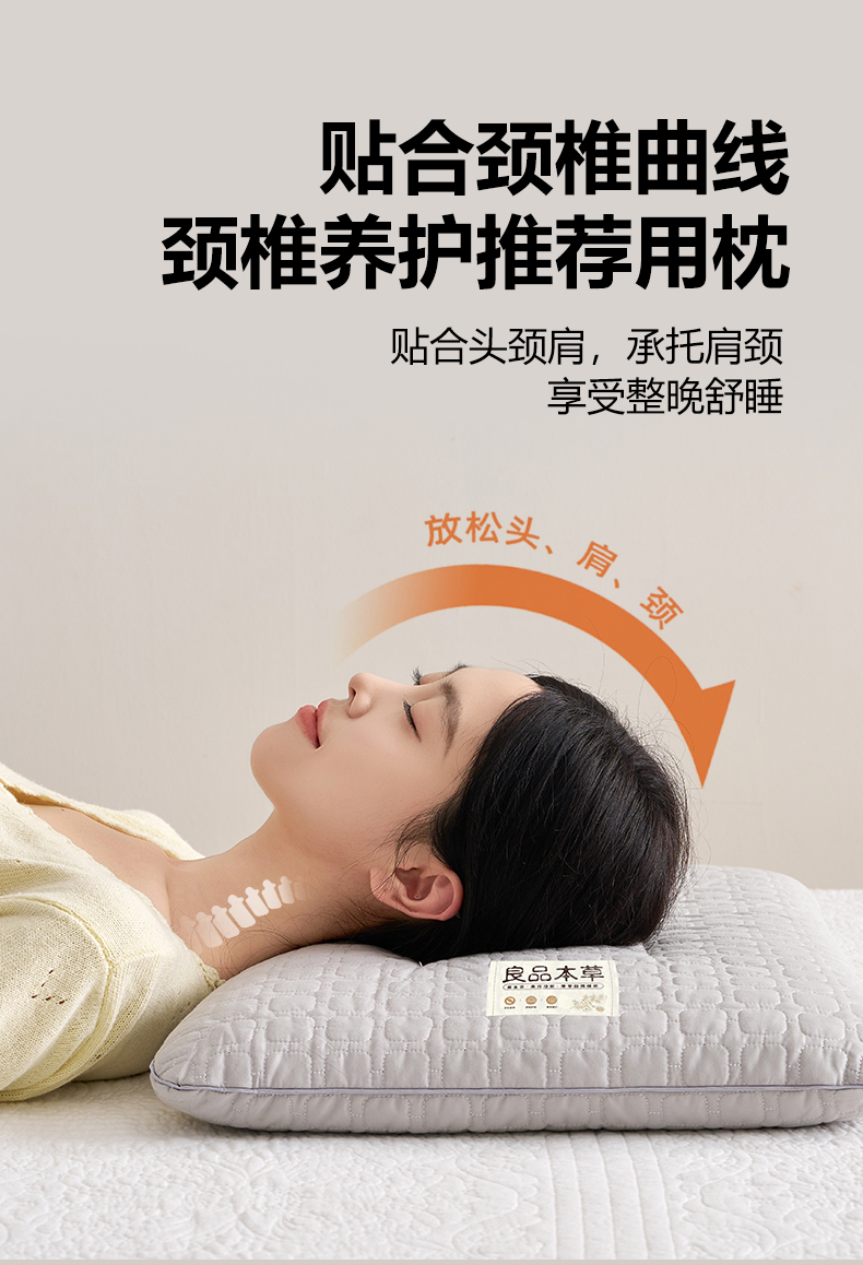 (总)乐可 2025新款分区两用牵引枕全棉双向枕 枕头枕芯,分区两用牵引枕