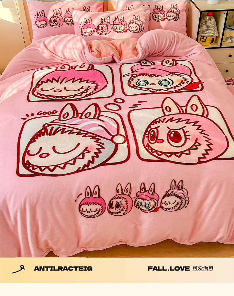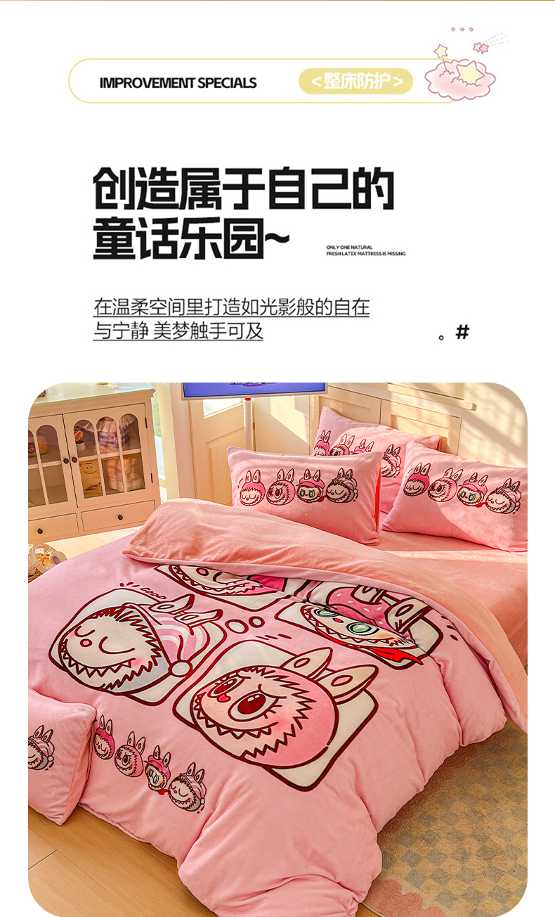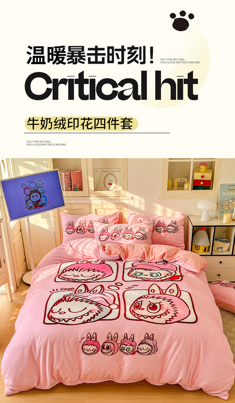 当前位置: 91家纺网 > 商品网购 > 床品套件 > 四件套 > 牛奶绒四件套 > 浩诚 2025新款高克重牛奶绒大版卡通四件套系列 粉色布布