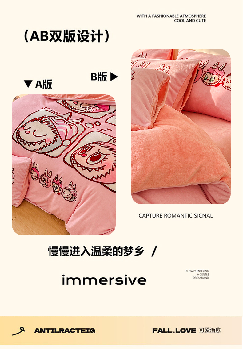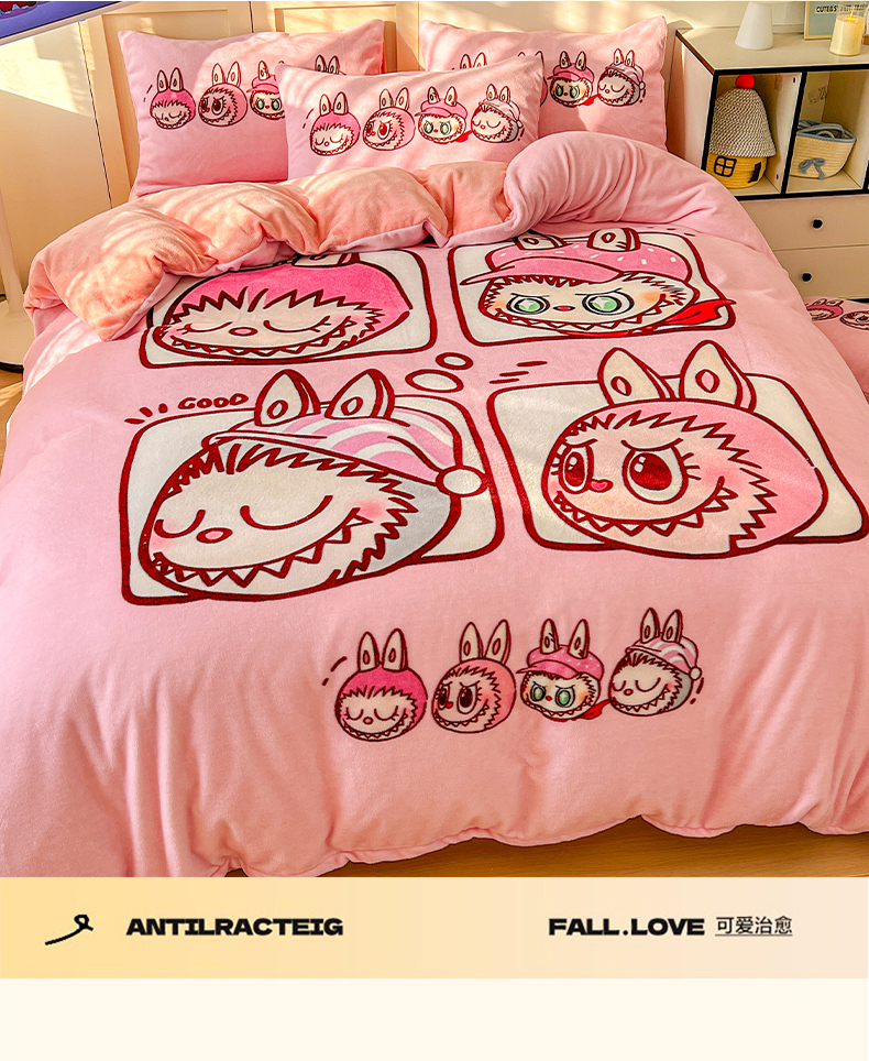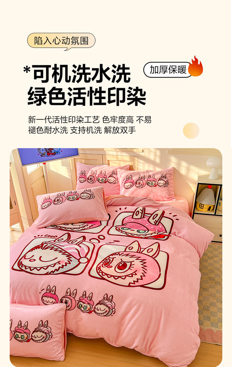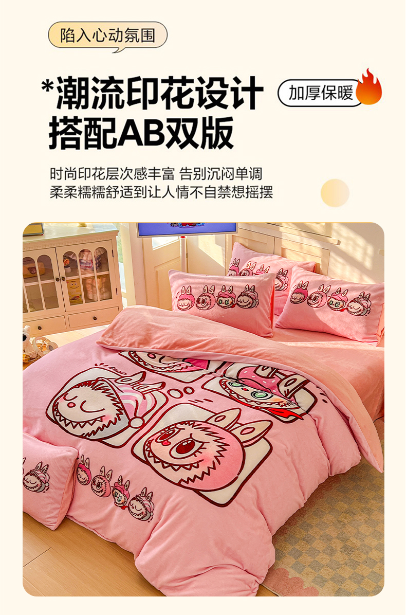 当前位置: 91家纺网 > 商品网购 > 床品套件 > 四件套 > 牛奶绒四件套 > 浩诚 2025新款高克重牛奶绒大版卡通四件套系列 粉色布布