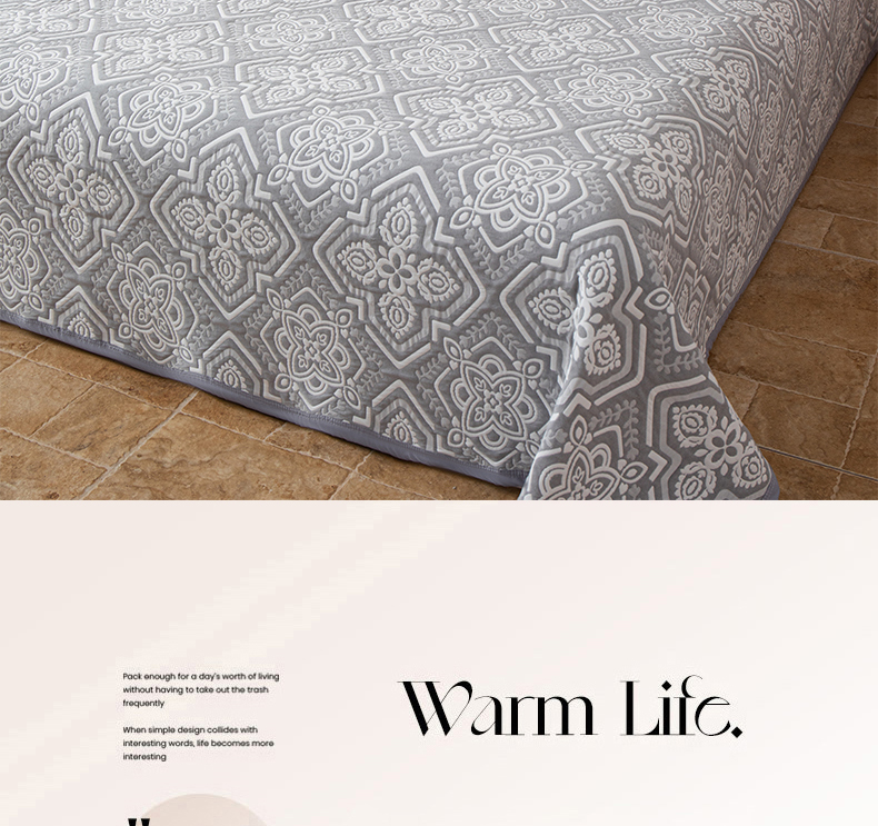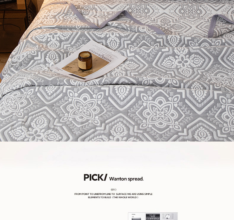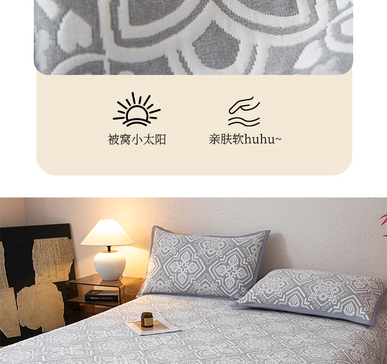当前位置: 91家纺网 > 商品网购 > 床上用品 > 床盖 > 小叮当家纺仓储工厂店 (买家秀 爆款花型 不断货)2025新款A类三层纱纱布毛巾被单品床盖单件床盖 卡曼洛-锡器灰
