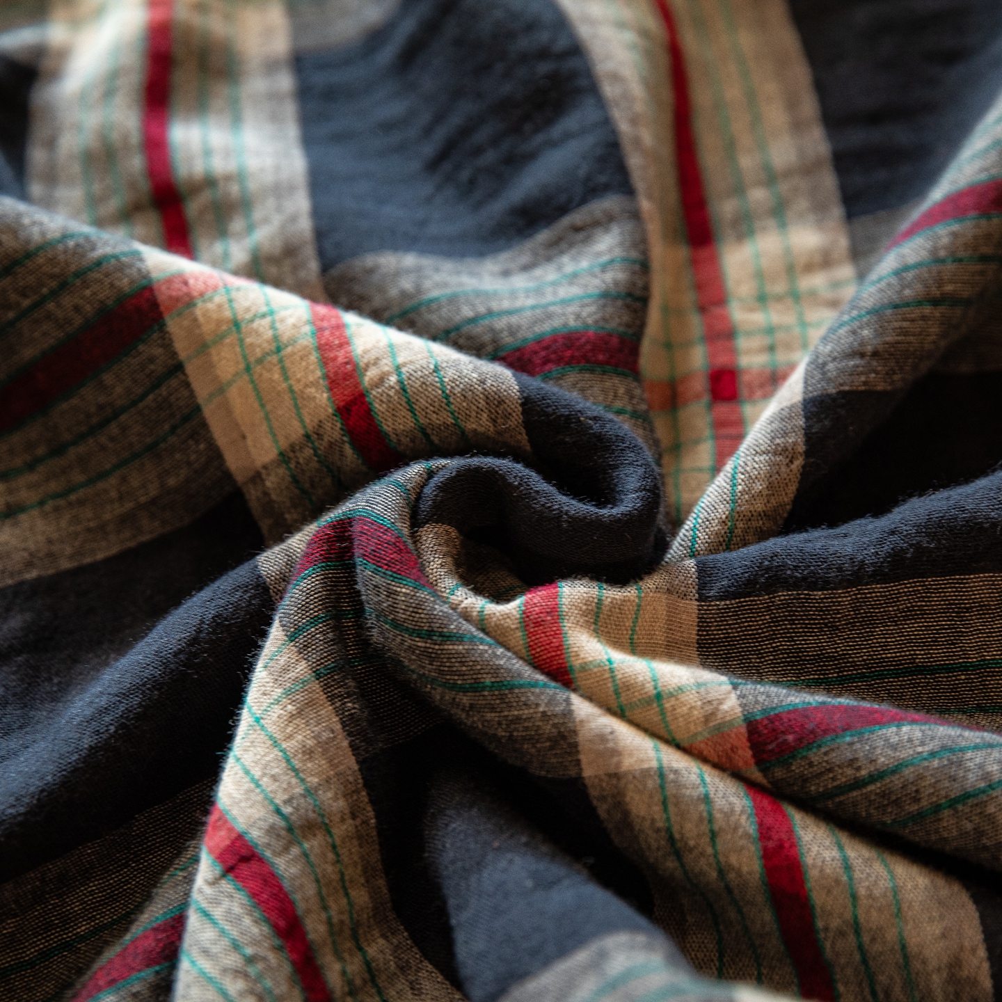 (总)仰望棉麻双层纱供应链 2025新款弥山AA版全棉色织提花双层纱春秋被冬被被子被芯,弥山-朱红,弥山-咖色