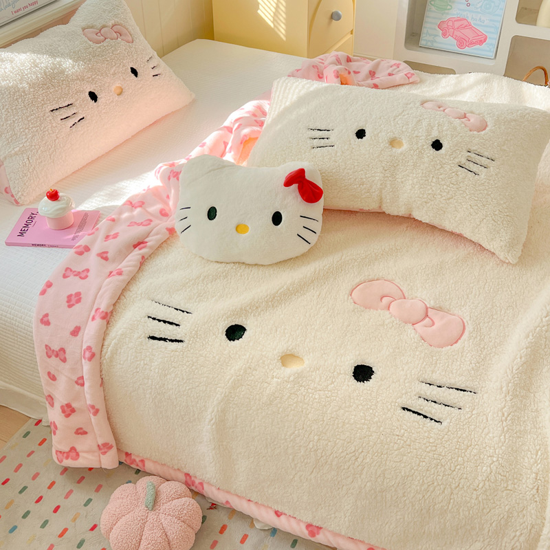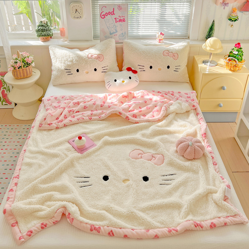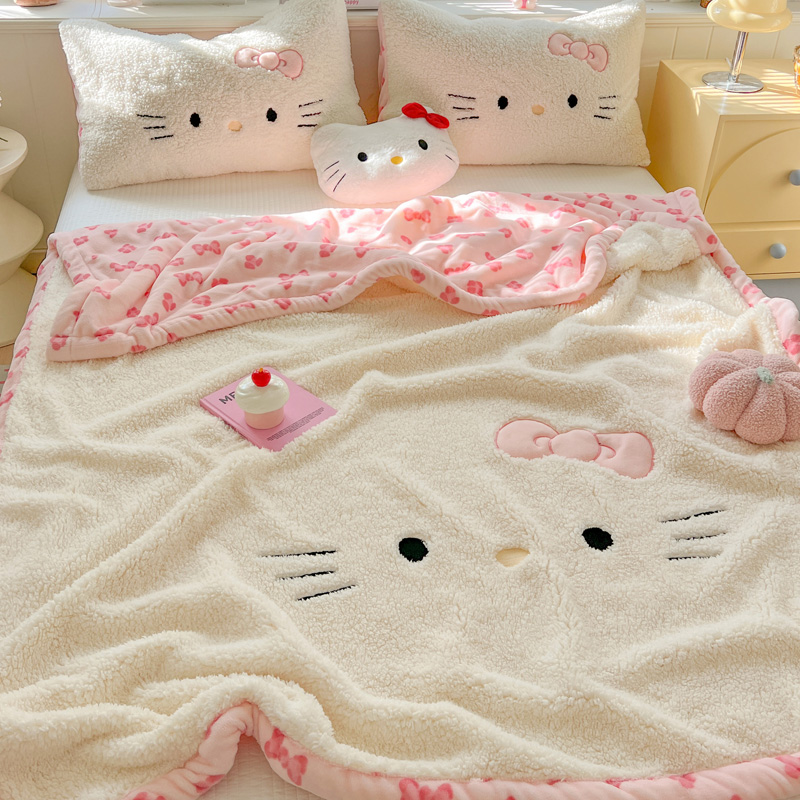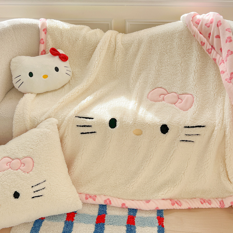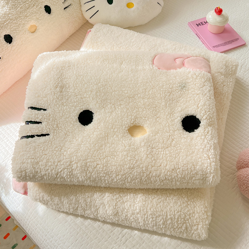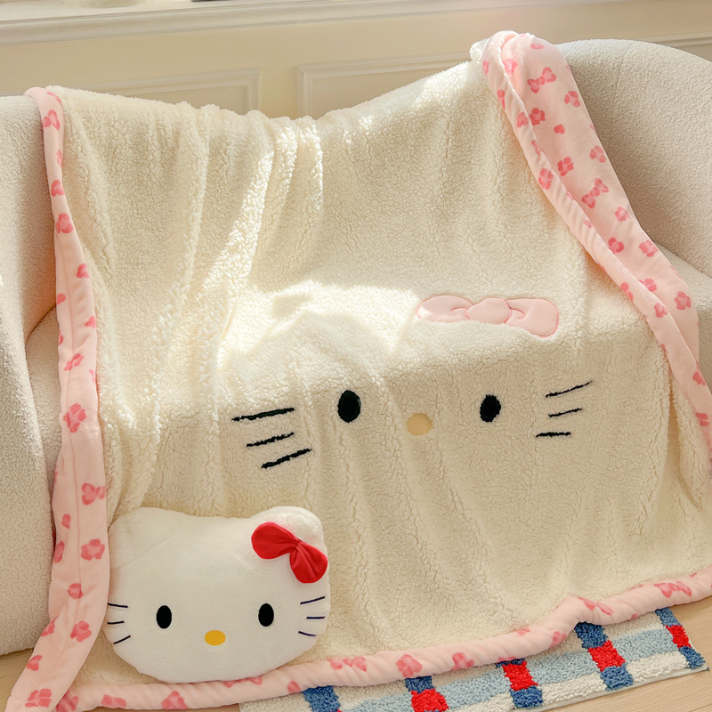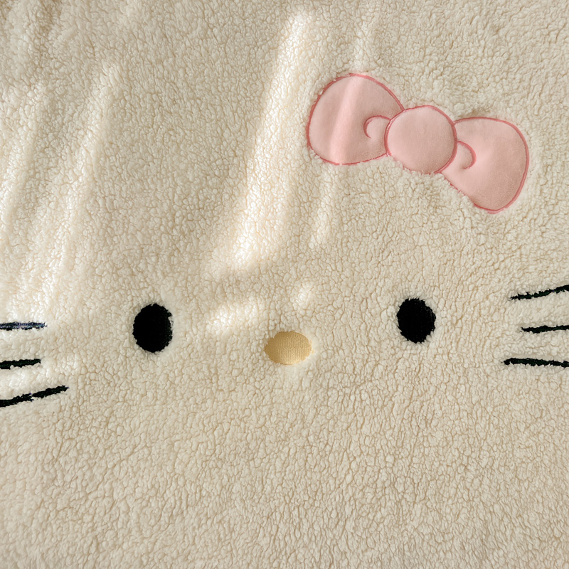 商品名称:繁花家居 2025新款羊羔绒牛奶绒绣花喵喵系列毛毯 表情喵-奶白