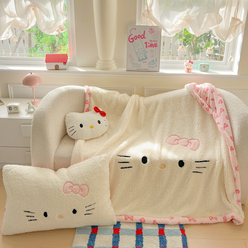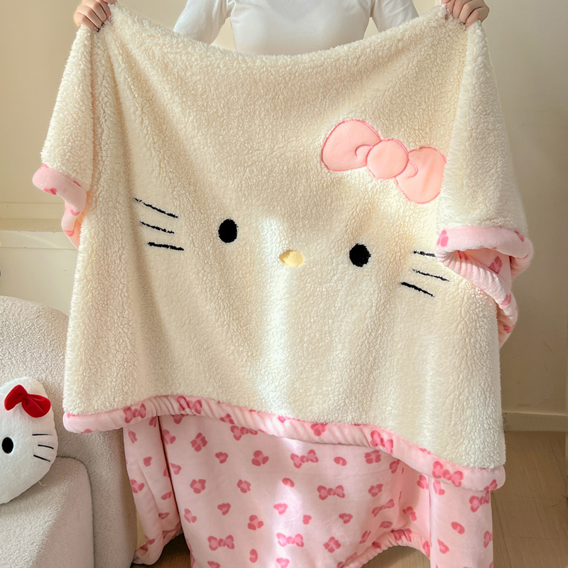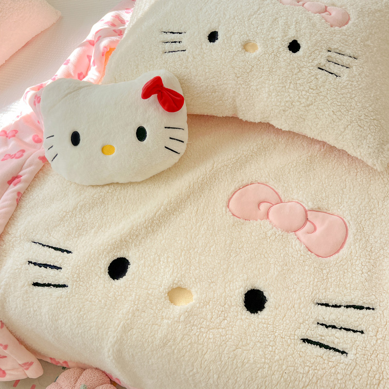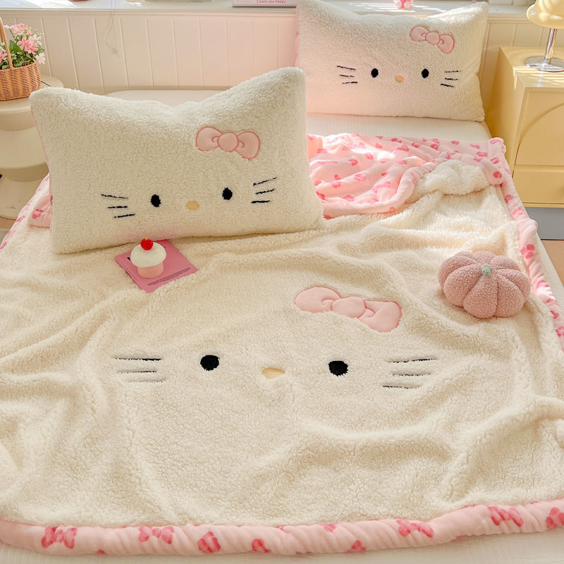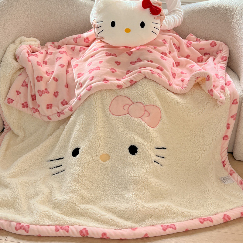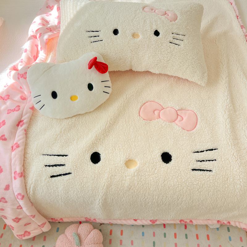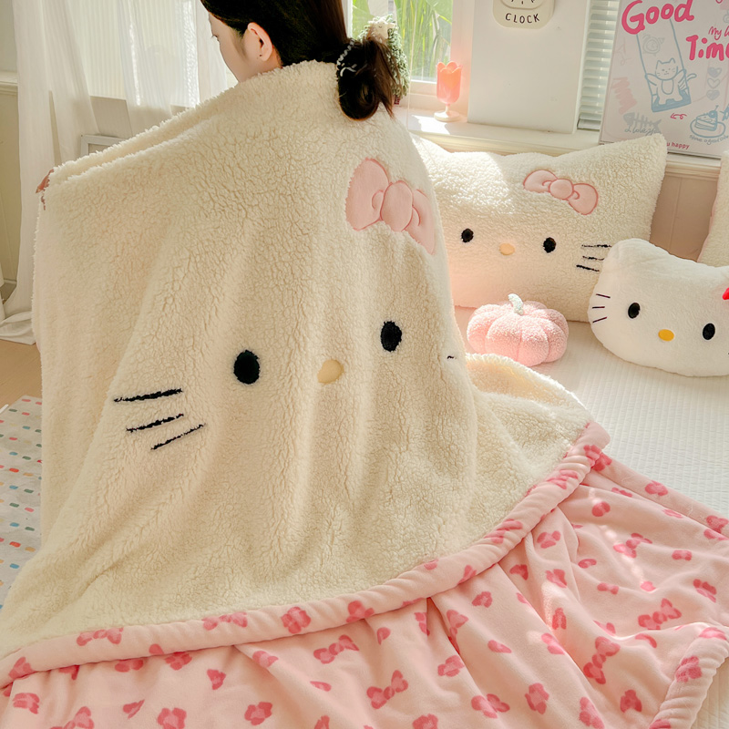 商品名称:繁花家居 2025新款羊羔绒牛奶绒绣花喵喵系列毛毯 表情喵-奶白