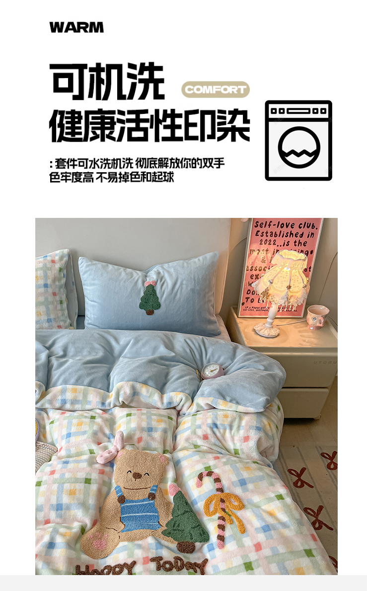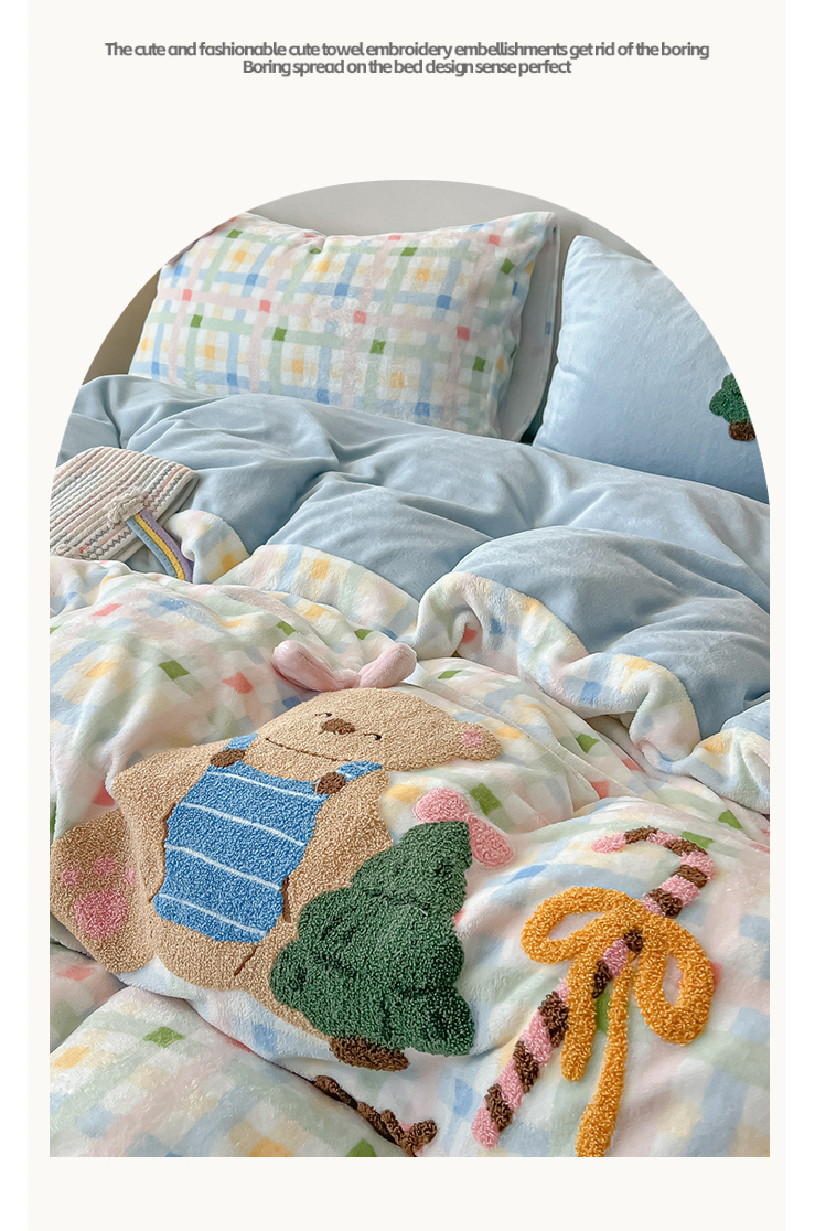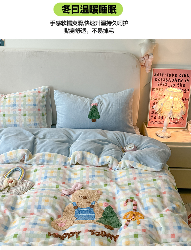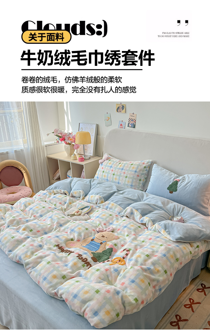 当前位置: 91家纺网 > 商品网购 > 床品套件 > 四件套 > 牛奶绒四件套 > 子钦家纺 2025秋冬新款加厚牛奶绒撸猫感毛巾绣四件套-圣诞小熊 圣诞小熊-七彩格