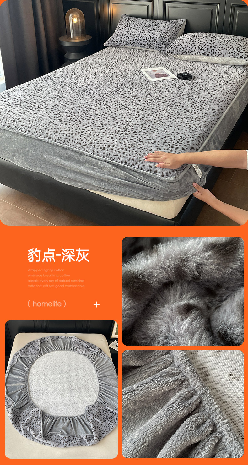 商品名称:库里梦家纺 2025新款美拉德托卡斯獭兔毛绒床笠三件套 豹点-白