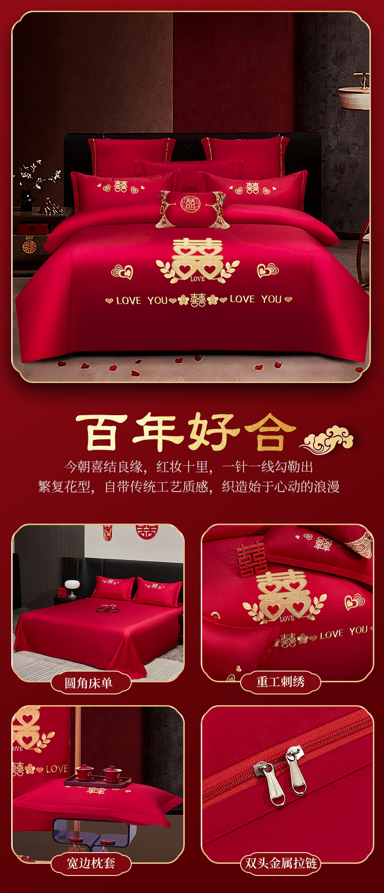 (总)浩情国际婚庆供货中心 2026新款100%全棉纯棉新中式刺绣大红结婚婚庆四件套多件套,HQ-百年好合,HQ-情投意合,HQ-幸福美满,HQ-心囍(金),HQ-囍结良缘,HQ-大囍事
