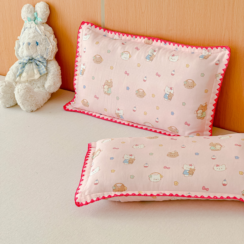 (总)金丝鸟家纺 2026新款全棉双层纱毛球款枕套多规格儿童枕套,叠拍组合图仅供展示,查理卧室,奇迹动物园 米,软萌游园会,吐司乐园