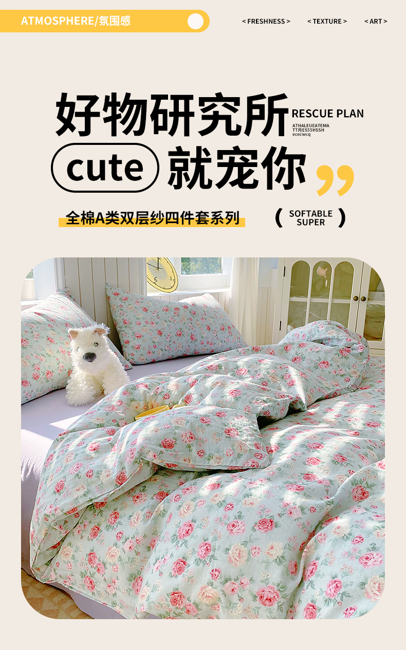 当前位置: 91家纺网 > 商品网购 > 床品套件 > 四件套 > 全棉普通四件套 > 春皖家纺 2026新款A类全棉有氧双层纱印花四件套单品系列-四件套 桂语兰庭