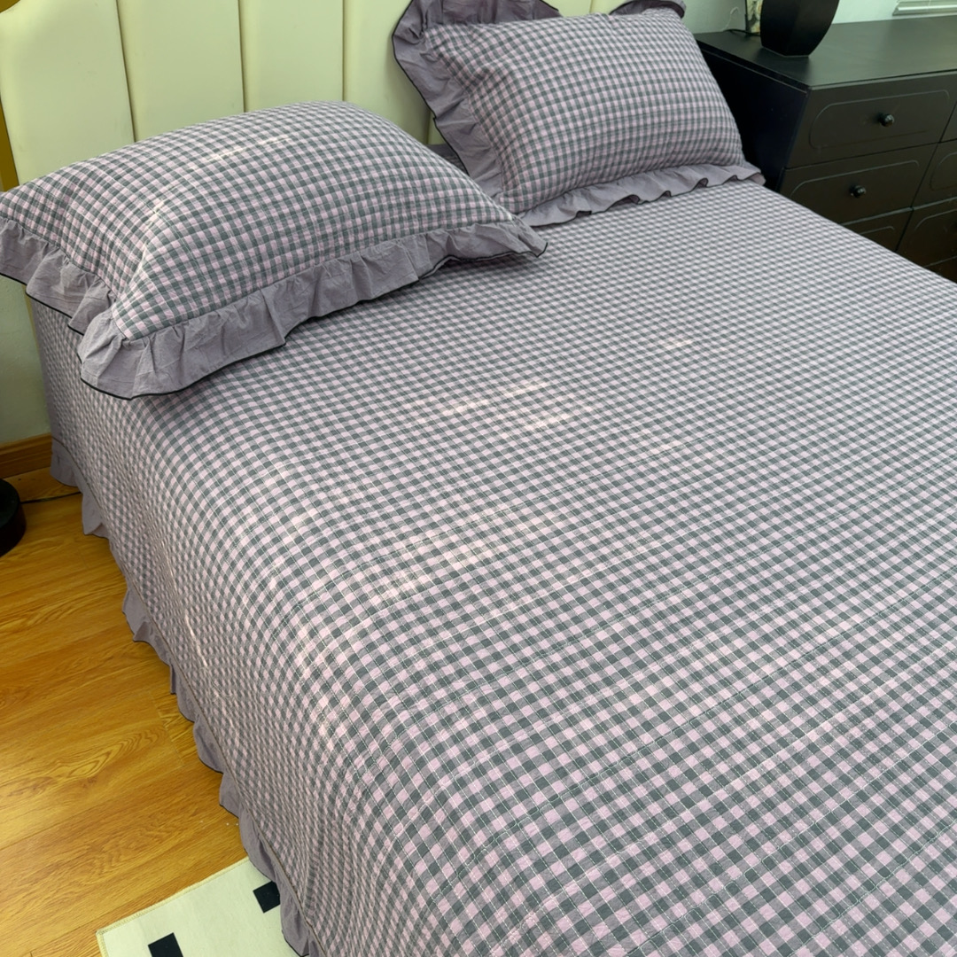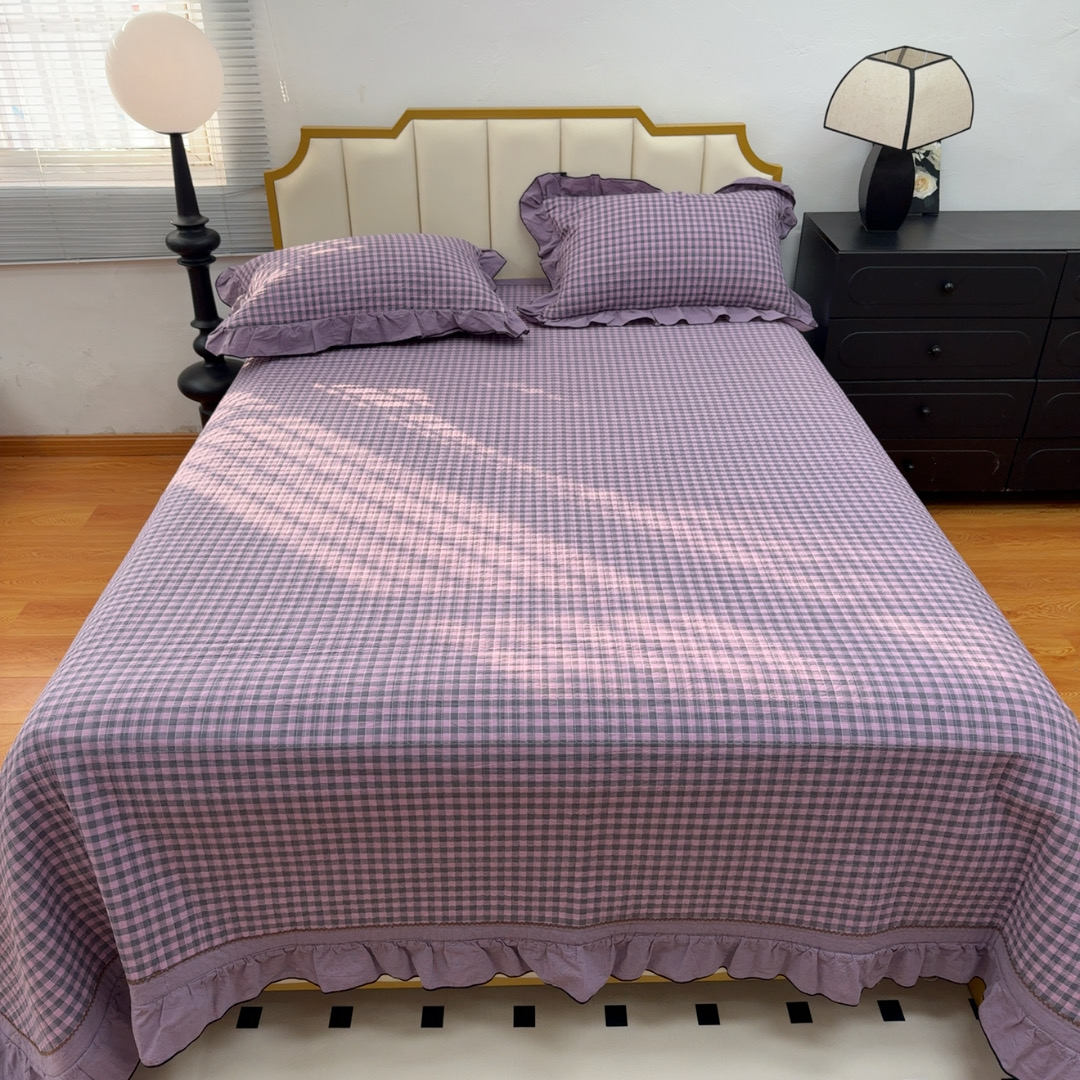 暖居 2026年新款全棉色织水洗棉高温砂洗床盖三件套四件套丁香紫