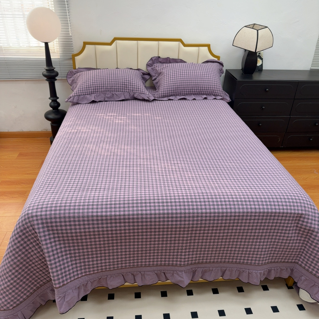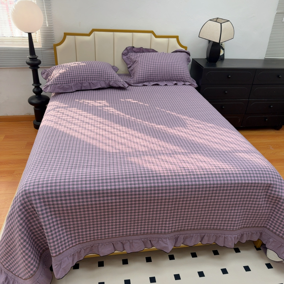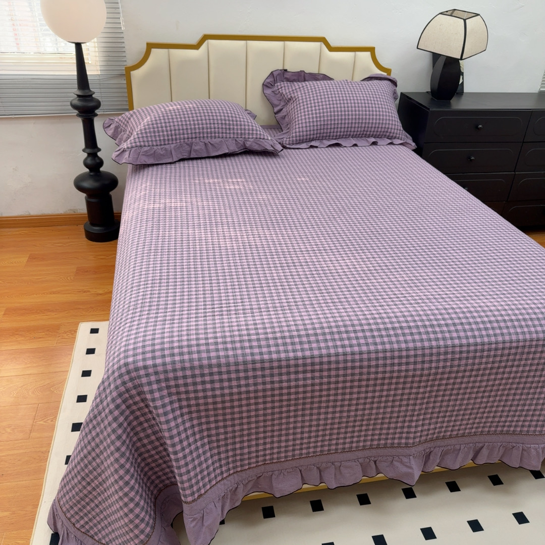 商品名称:暖居 2026年新款全棉色织水洗棉高温砂洗床盖三件套四件套丁香紫