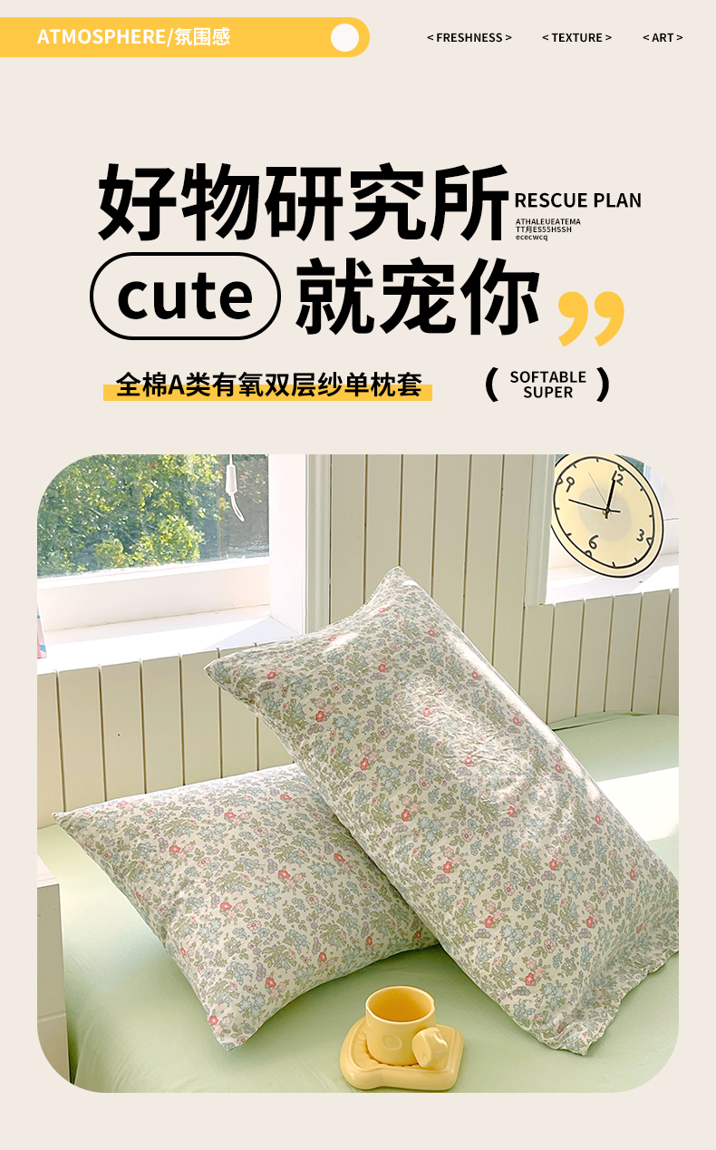 春皖家纺 2026新款A类全棉有氧双层纱印花四件套单品系列-单枕套 花町