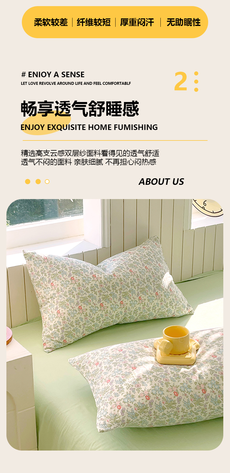 商品名称:春皖家纺 2026新款A类全棉有氧双层纱印花四件套单品系列-单枕套 花町