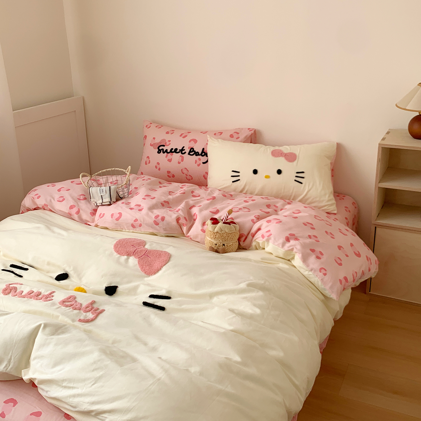 商品名称:桃喜 2026新款40支全棉12868四件套-黑皮猫猫 黑皮猫猫粉白
