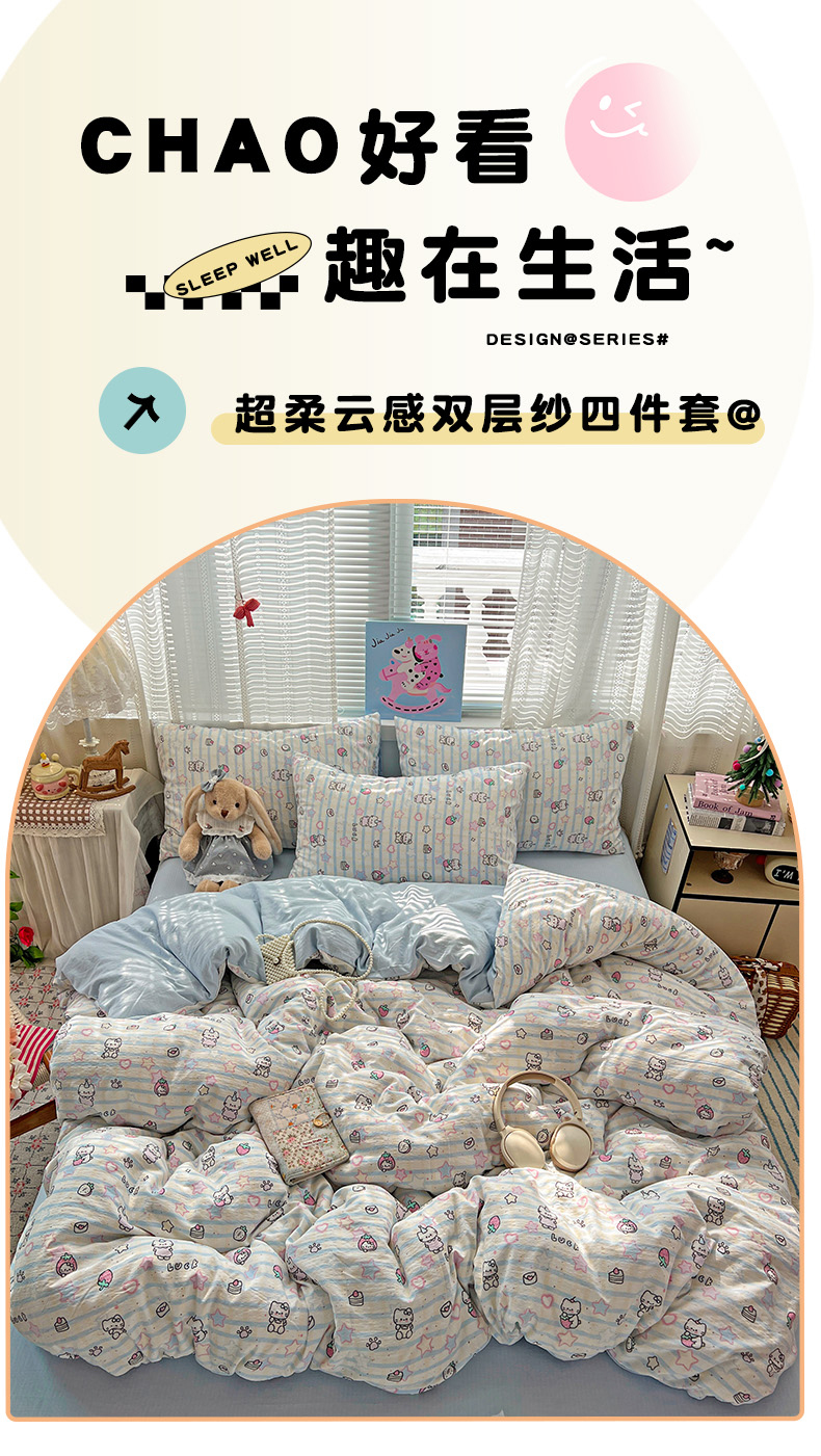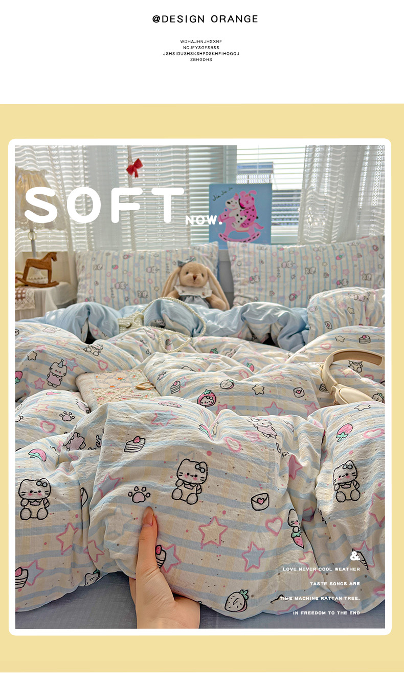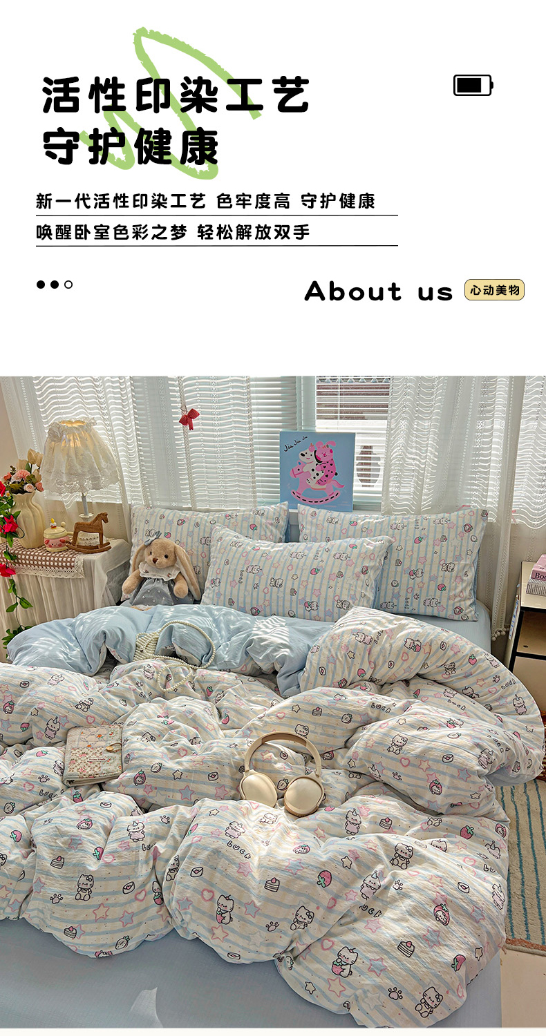 当前位置: 91家纺网 > 商品网购 > 床品套件 > 四件套 > 其它四件套 > 水木坊 2026新款云感简单款系列四件套 切块草莓猫