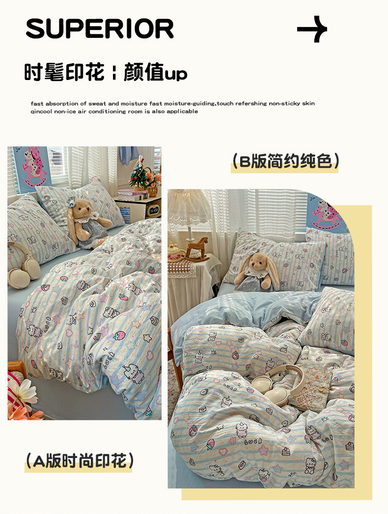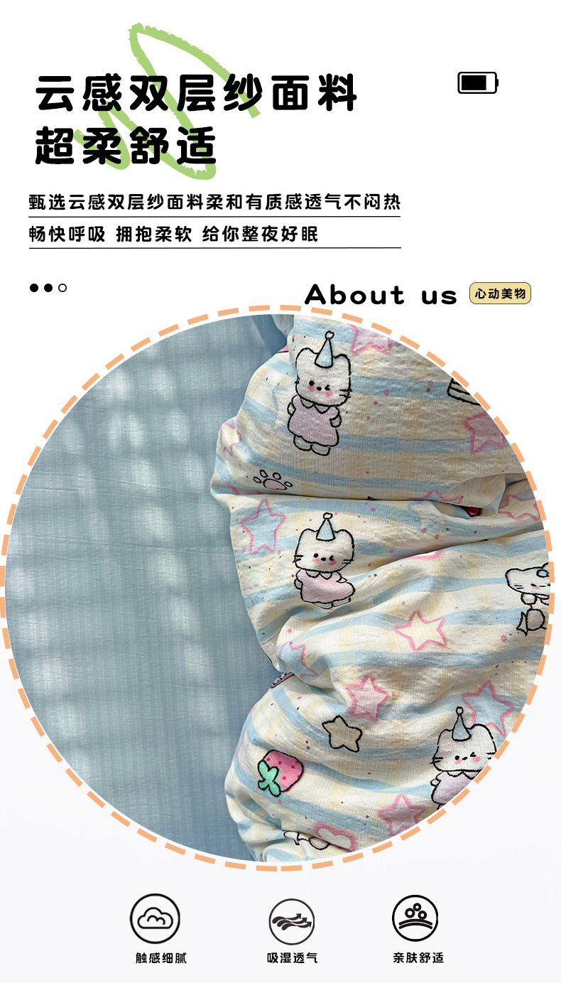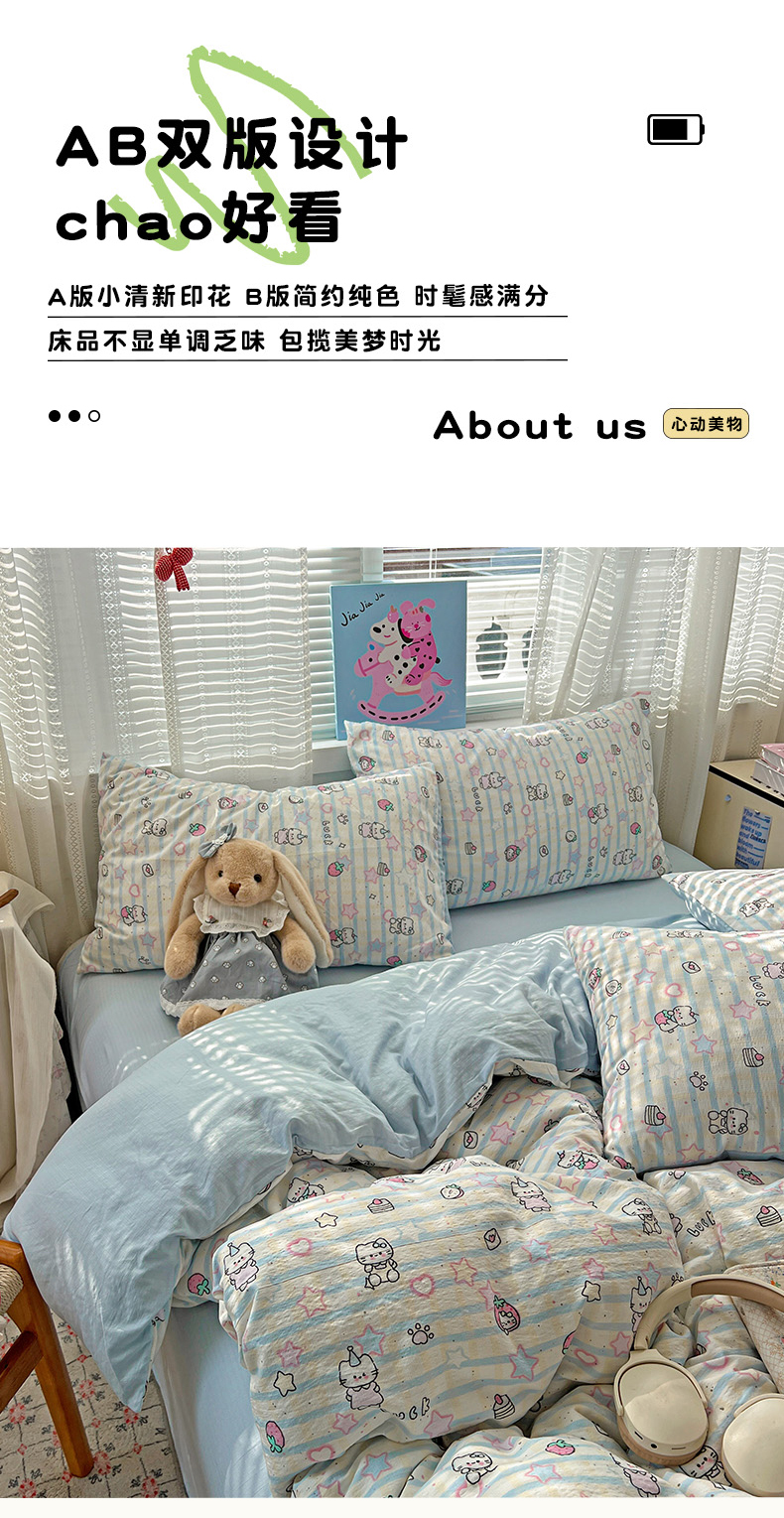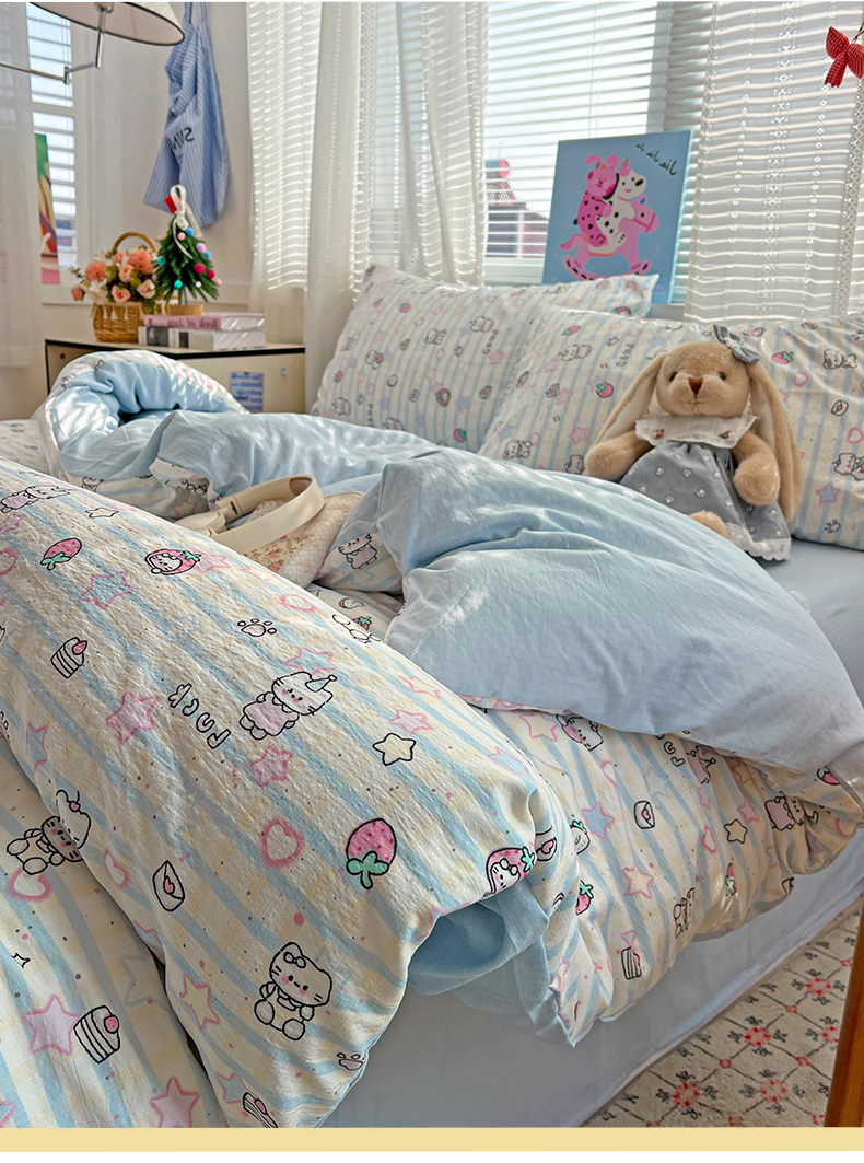 当前位置: 91家纺网 > 商品网购 > 床品套件 > 四件套 > 其它四件套 > 水木坊 2026新款云感简单款系列四件套 切块草莓猫