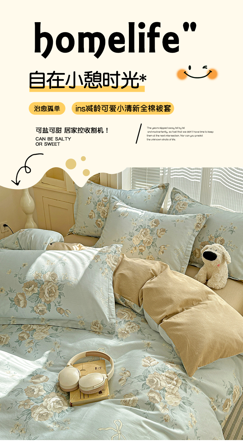 (总)春雨家居 2026新款全棉印花ins减龄可爱小清新单被套(提供买家秀、质检报告、有预留缩水)