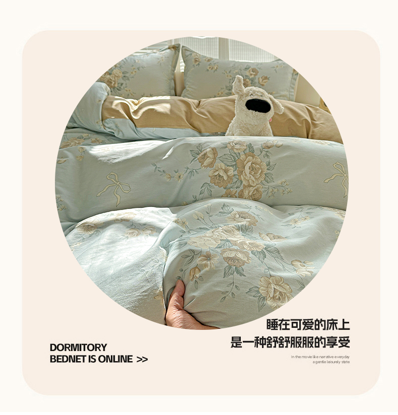 (总)春雨家居 2026新款全棉纯棉花ins减龄可爱小清新四件套(提供买家秀、质检报告、有预留缩水)),贝尔兰-兰,比星邦尼狗,布布迷宫,春漫庭,达乐宝贝,朵唯,芙莉,格子布丁狗,故事小黄花,韩系拼图,旧书折痕-蓝,蓝拼KT-兰,浪漫花园,洛克庄园-绿,萌趣汪汪,暮洛星,奶油凯蒂-兰,奶油羞羞狗,清秋夜曲,秋日确幸-豆沙,苏林-绿,苏糖-粉,夏日花莳,小菠萝,小猫时光-兰,心动庄园,星星童话园-兰,叶语轻喃-绿,玉海棠,芋泥小狗,醉梦惜花