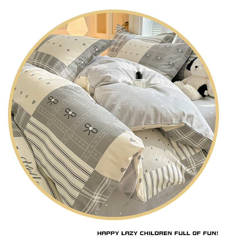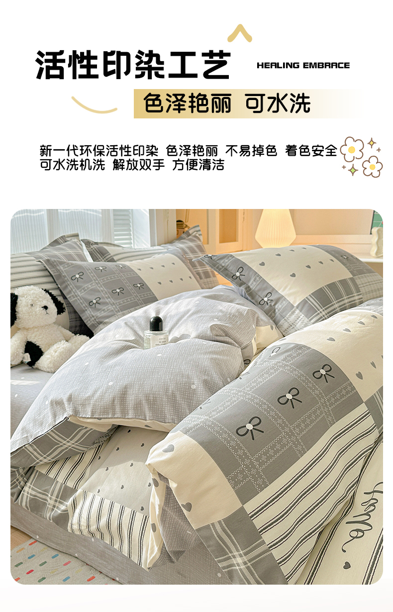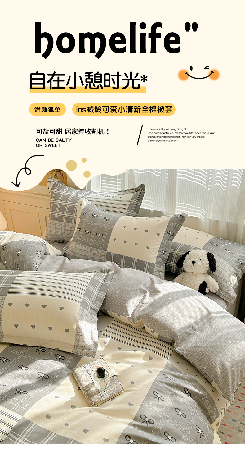 • 91家纺网 家纺一手货源 找家纺 春雨家居 2026新款全棉印花ins减龄可爱小清新单被套 韩系拼图