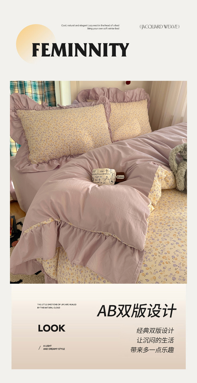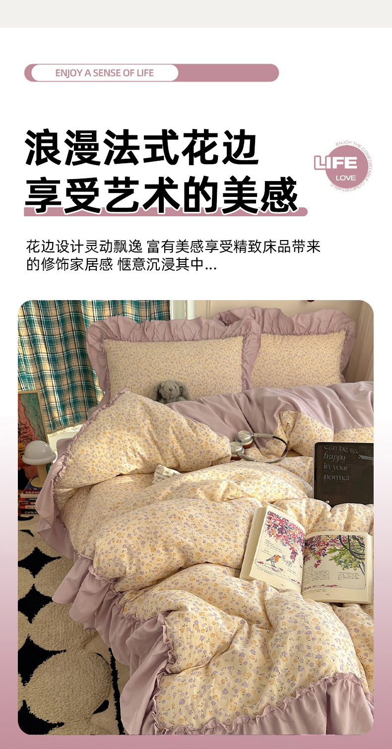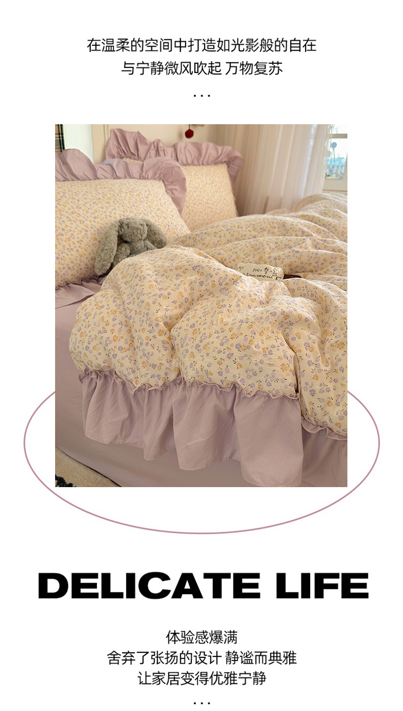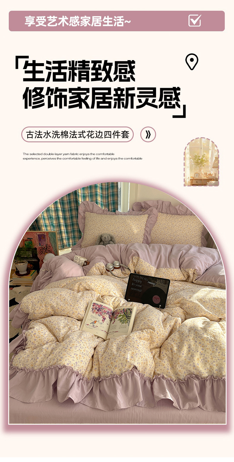 当前位置: 91家纺网 > 商品网购 > 床品套件 > 四件套 > 水洗棉四件套 > 凯洛奇 2026新款A类仿棉四件套古法水洗棉法式工艺花边套件(提供买家秀) 紫藤花语