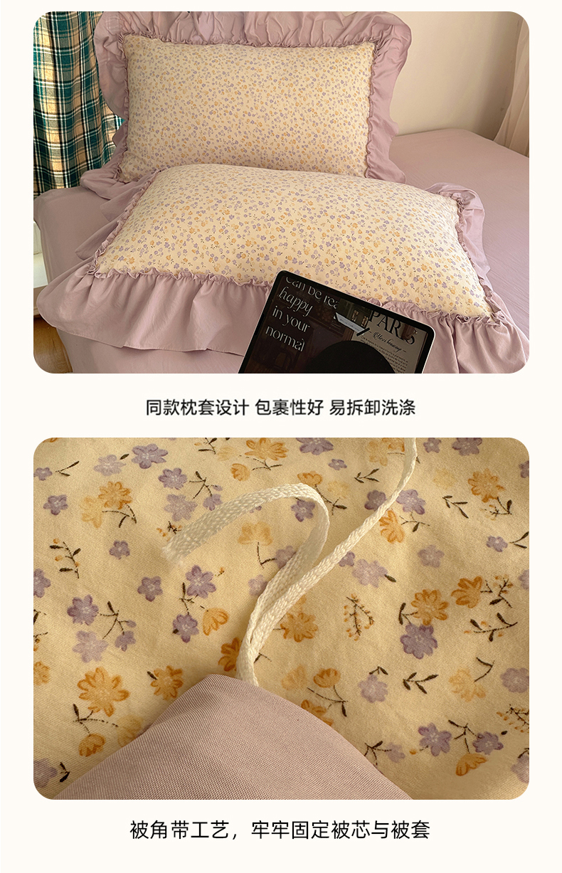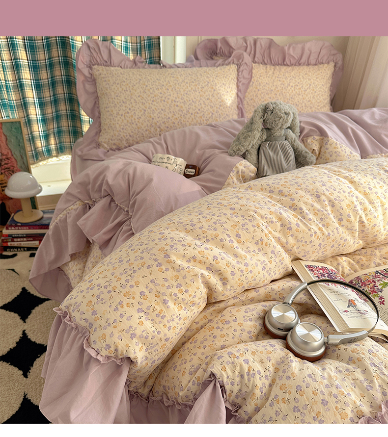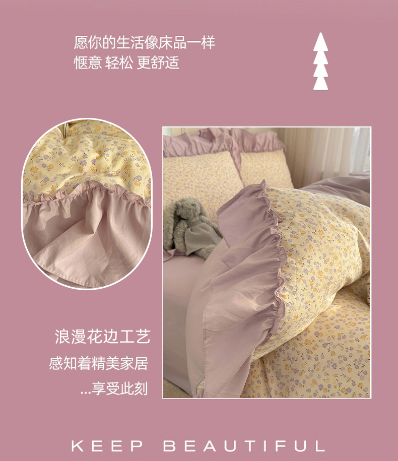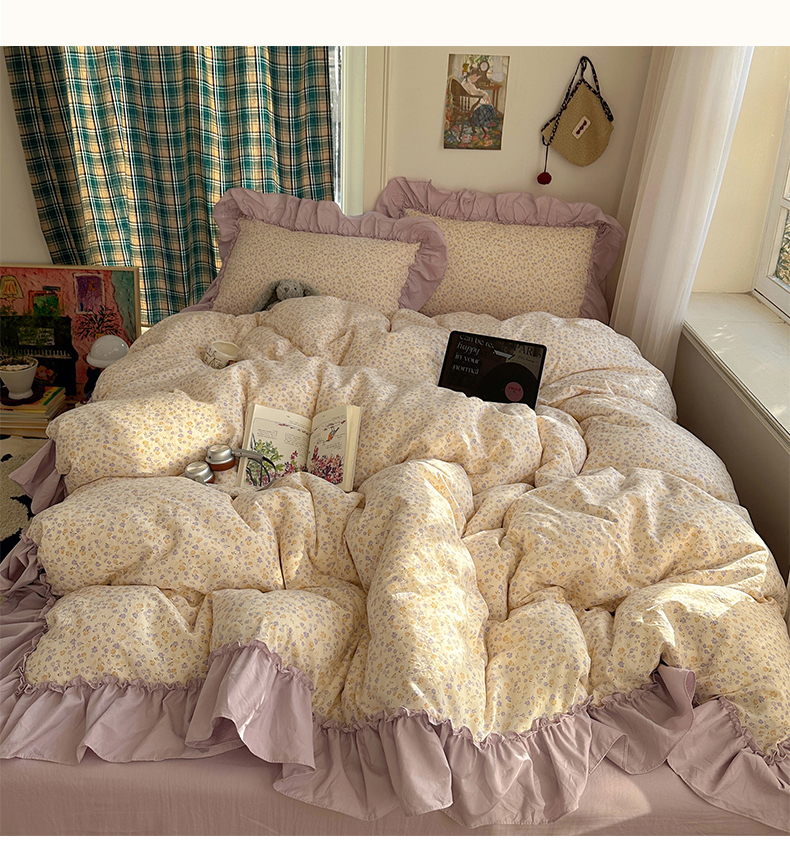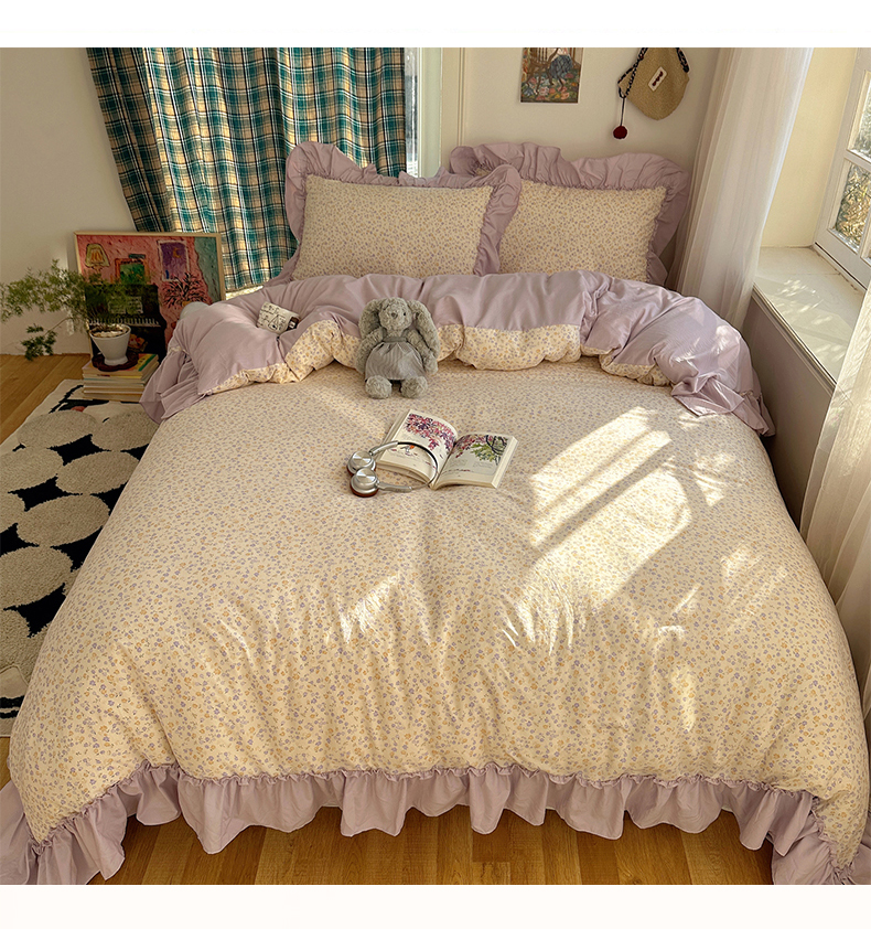 当前位置: 91家纺网 > 商品网购 > 床品套件 > 四件套 > 水洗棉四件套 > 凯洛奇 2026新款A类仿棉四件套古法水洗棉法式工艺花边套件(提供买家秀) 紫藤花语